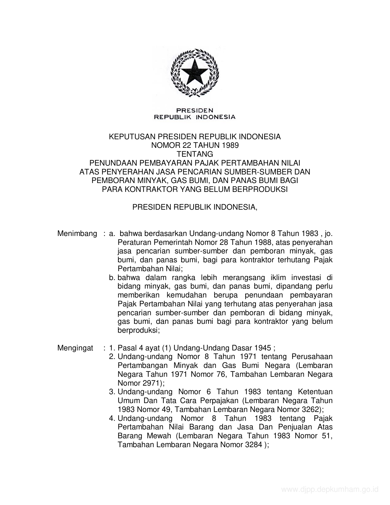 Ditetapkan di Jakarta pada tanggal 24 Mei 1989