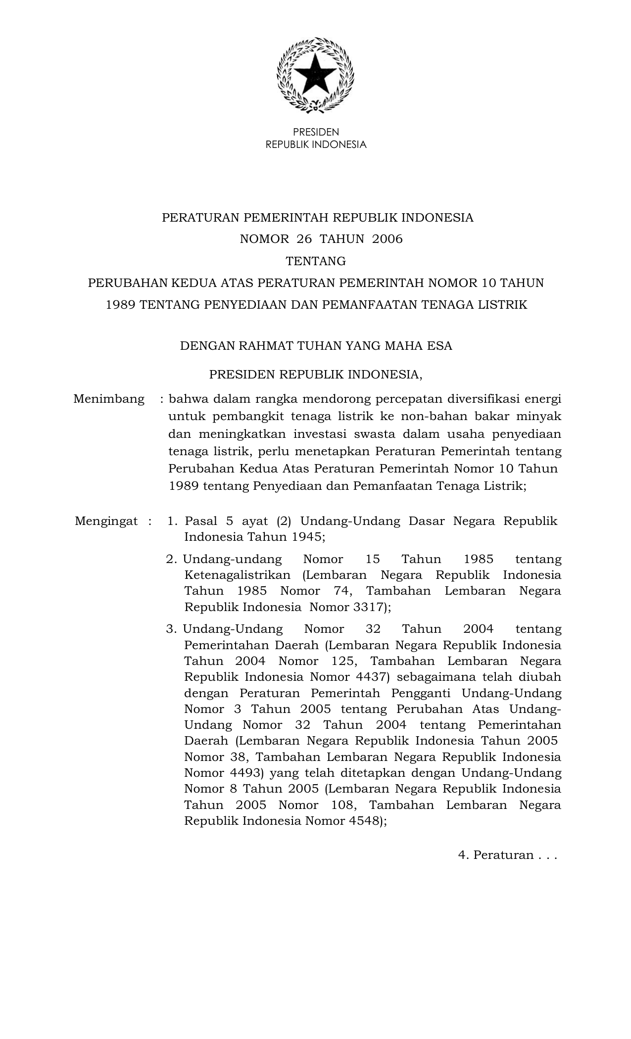 KEPPRES Nomor 26 Tahun 2006 | Keputusan Presiden Nomor 26 Tahun 2006 tentang PEMBENTUKAN PENGADILAN NEGERI TAMIANG LAYANG DAN PENGADILAN NEGERI BATULICIN