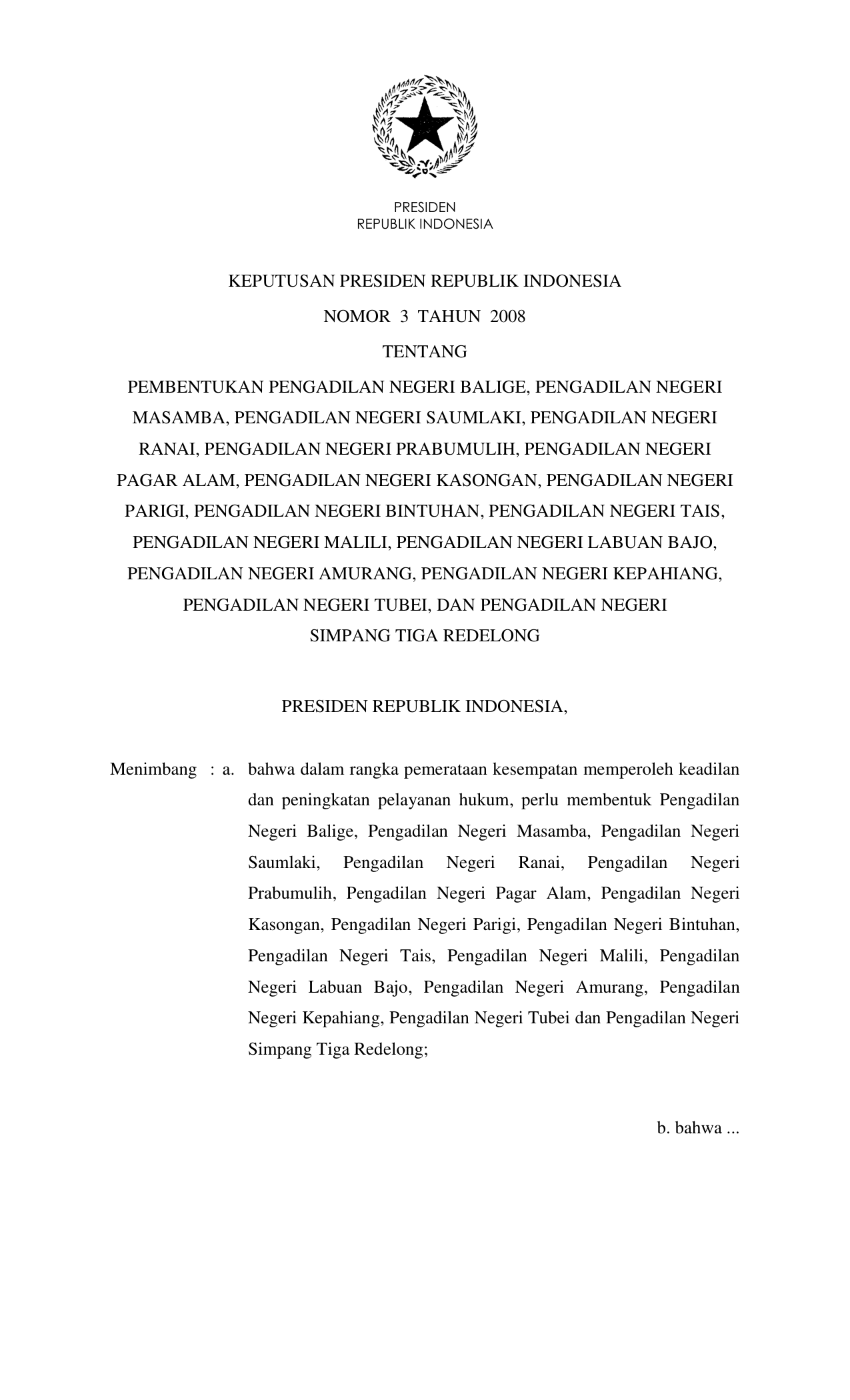 (10) Daerah hukum Pengadilan Negeri Tais meliputi wilayah Kabupaten Seluma, Provinsi Bengkulu.