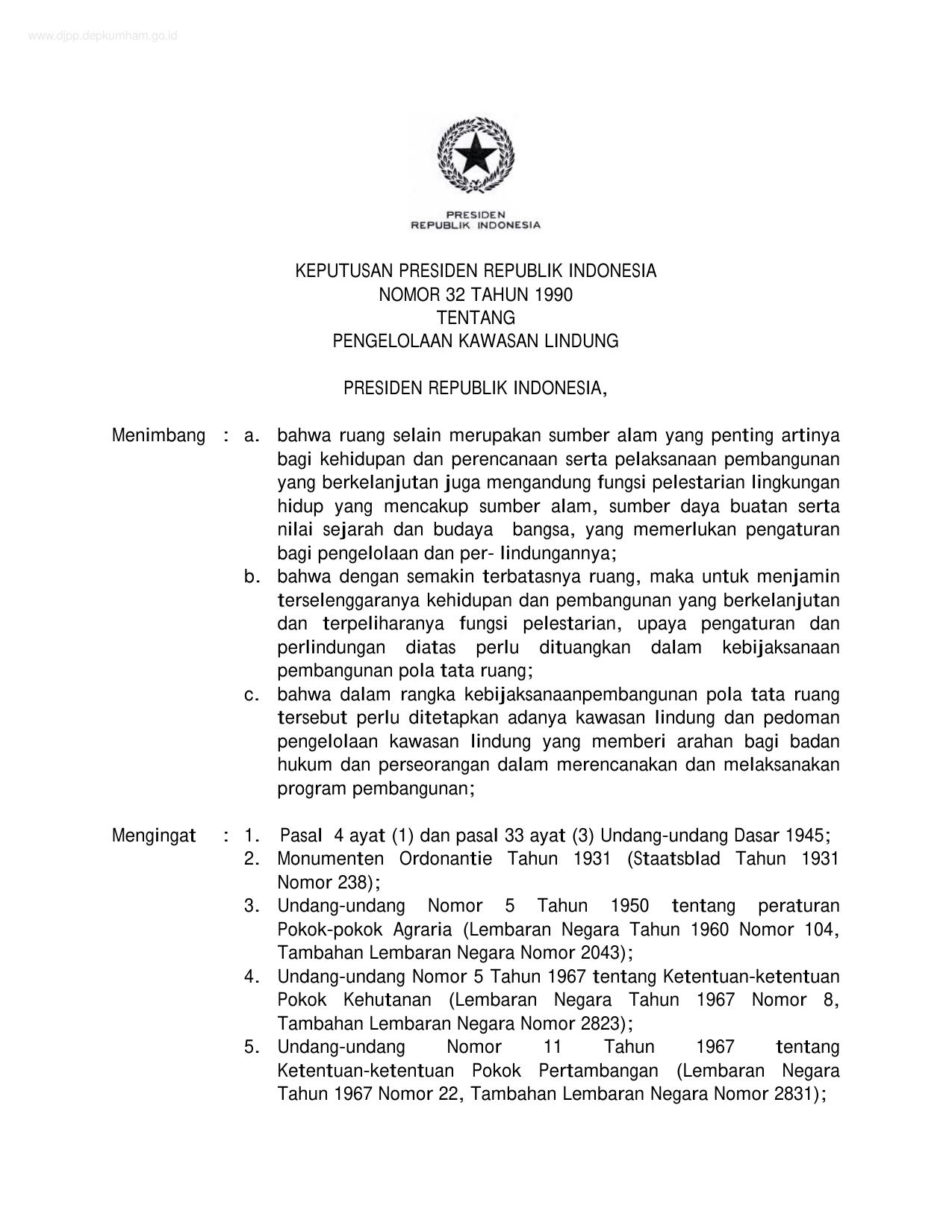 KEPPRES Nomor 32 Tahun 1990 | Keputusan Presiden Nomor 32 Tahun 1990 tentang PENGELOLAAN KAWASAN LINDUNG