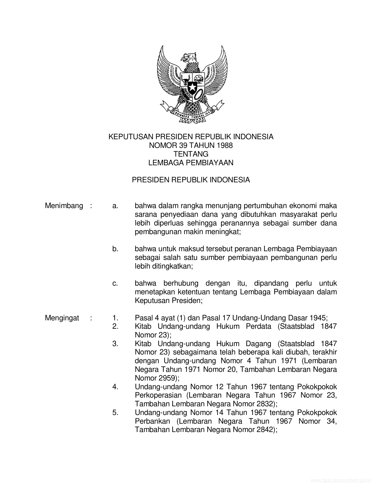 KEPPRES Nomor 39 Tahun 1988 | Keputusan Presiden Nomor 39 Tahun 1988 tentang LEMBAGA PEMBIAYAAN