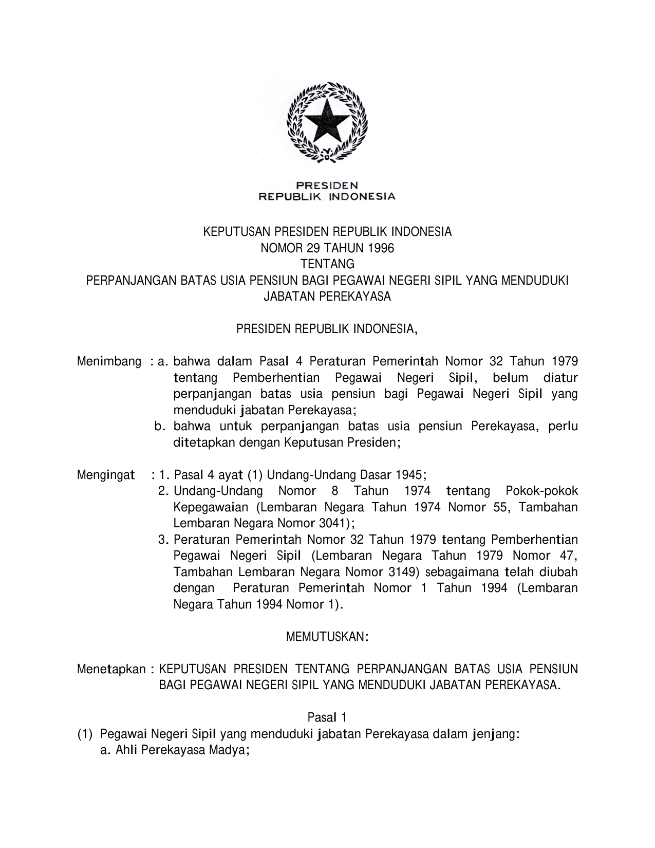 Keputusan pemberhentian Pegawai Negeri Sipil yang menduduki jabatan Perekayasa yang telah ditetapkan oleh Pejabat yang berwenang sebelum berlakunya Keputusan PRESIDEN ini, tetap berlaku.