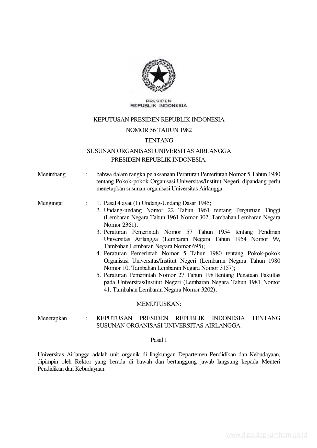 KEPPRES Nomor 56 Tahun 1982 | Keputusan Presiden Nomor 56 Tahun 1982 tentang SUSUNAN ORGANISASI UNIVERSITAS AIRLANGGA