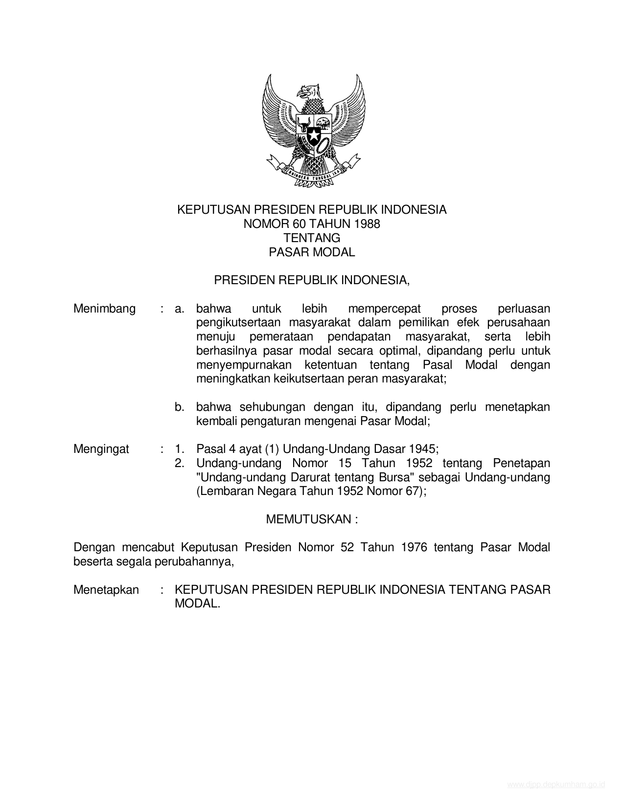 KEPPRES Nomor 60 Tahun 1988 | Keputusan Presiden Nomor 60 Tahun 1988 tentang PASAR MODAL