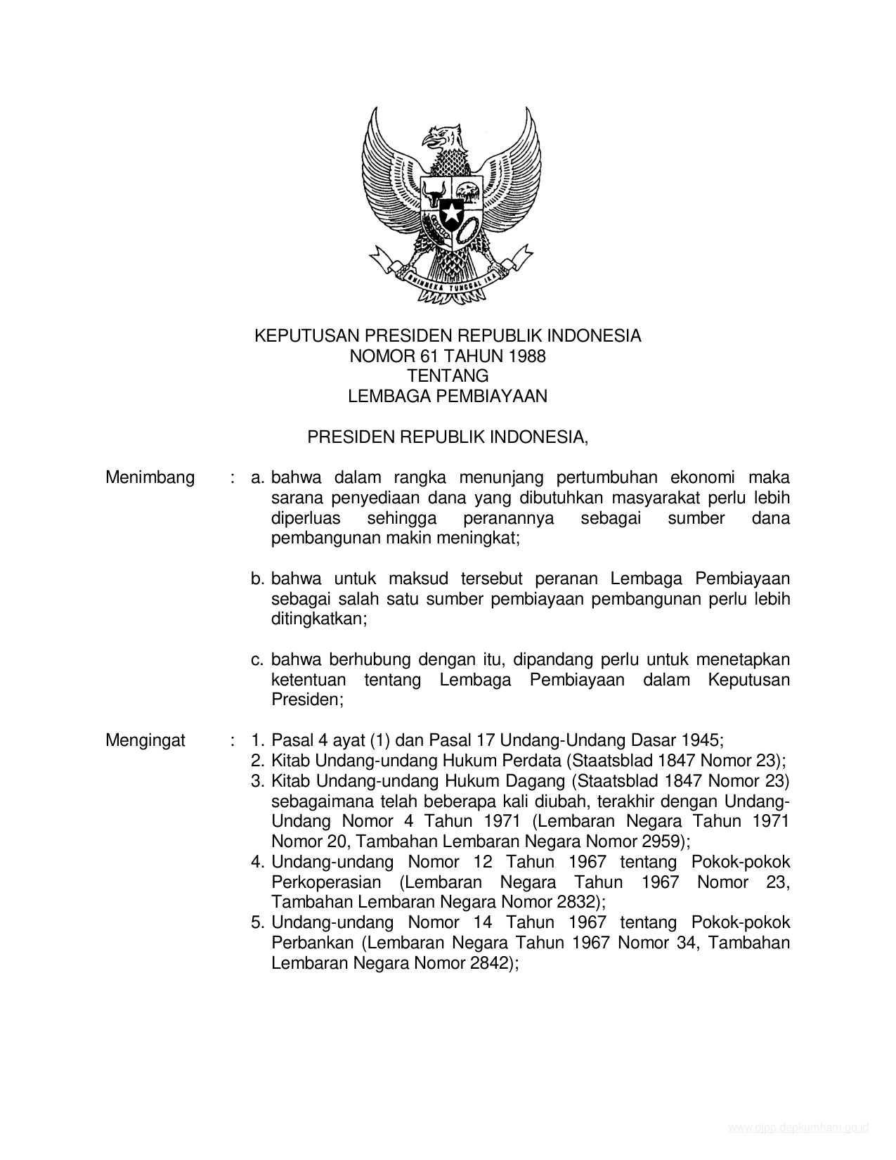 KEPPRES Nomor 61 Tahun 1988 | Keputusan Presiden Nomor 61 Tahun 1988 tentang LEMBAGA PEMBIAYAN
