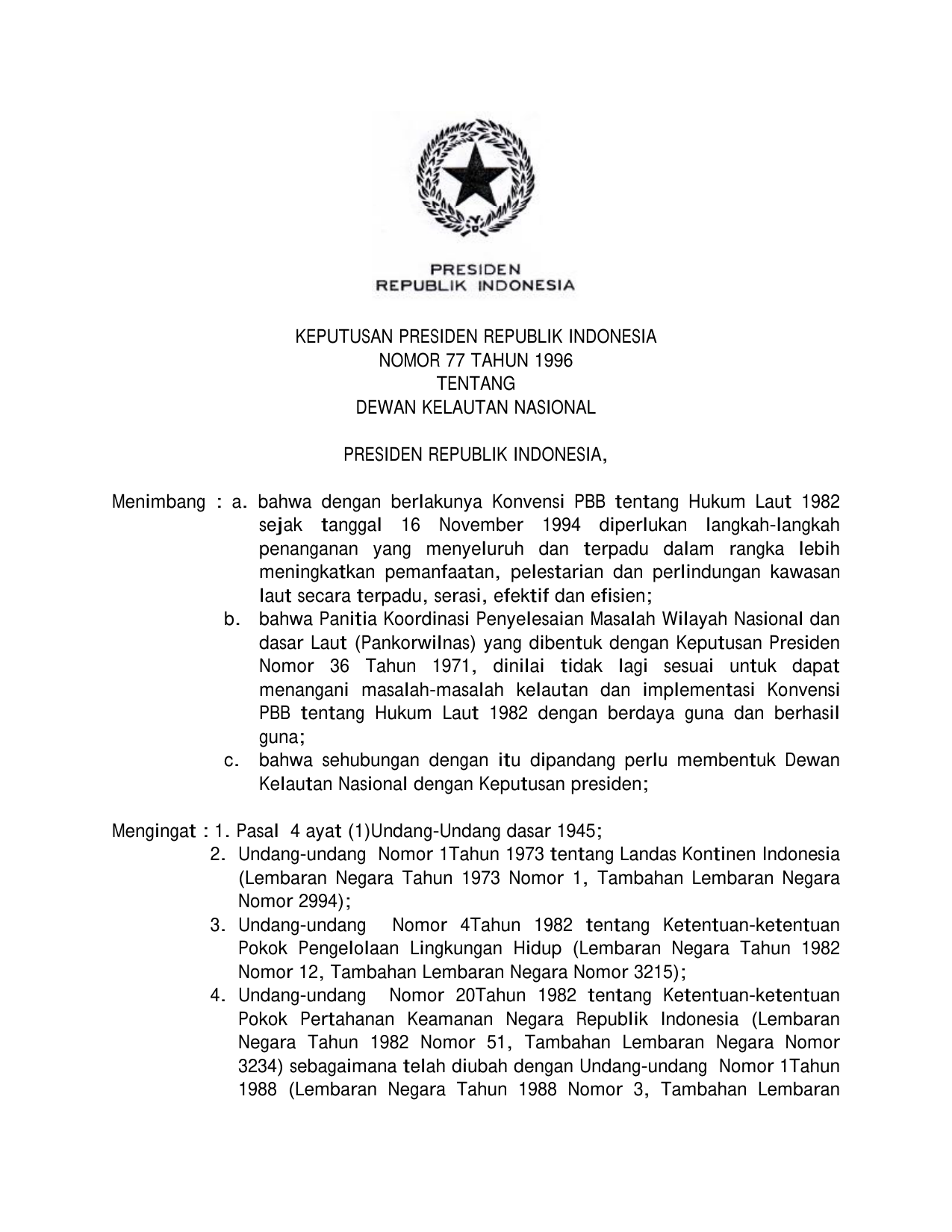 KEPPRES Nomor 77 Tahun 1996 | Keputusan Presiden Nomor 77 Tahun 1996 tentang DEWAN KELAUTAN NASIONAL