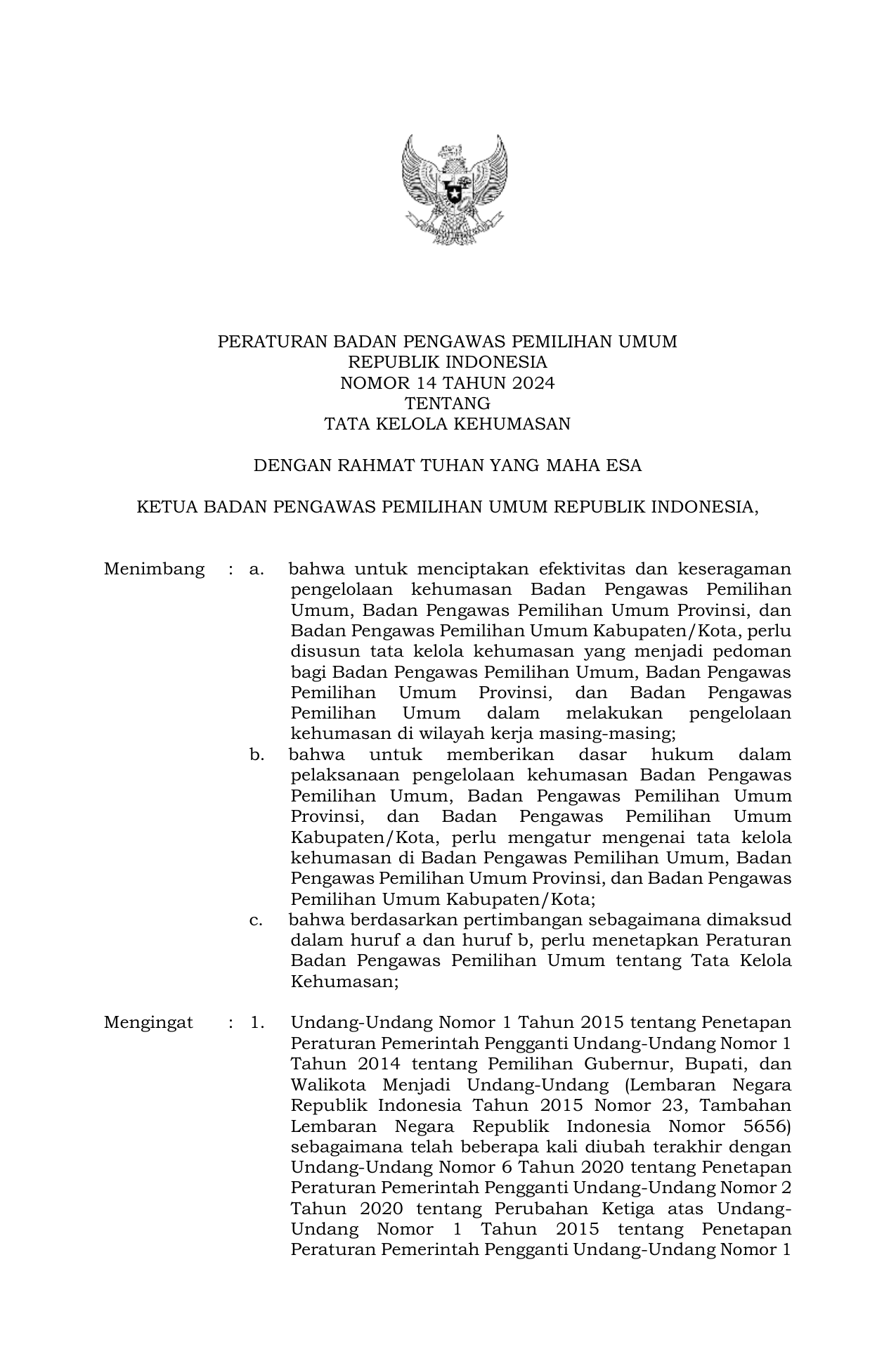 PERBAN Nomor 14 Tahun 2024 | Peraturan Badan Nomor 14 Tahun 2024 tentang Tata Kelola Kehumasan