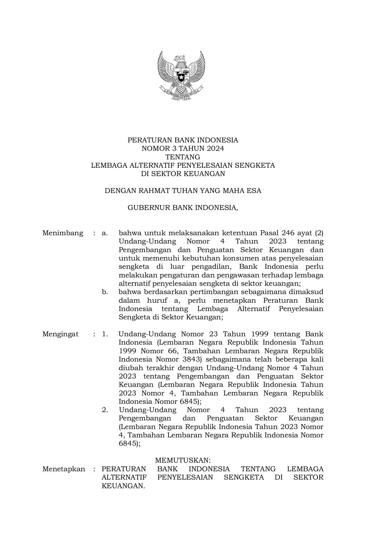 PERBAN Nomor 3 Tahun 2024 | Peraturan Badan Nomor 3 Tahun 2024 tentang Lembaga Alternatif Penyelesaian Sengketa di Sektor Keuangan