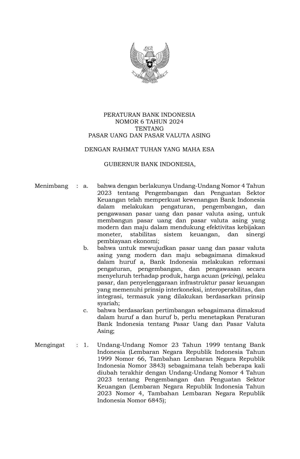 PERBAN Nomor 6 Tahun 2024 | Peraturan Badan Nomor 6 Tahun 2024 tentang Pasar Uang dan Pasar Valuta Asing