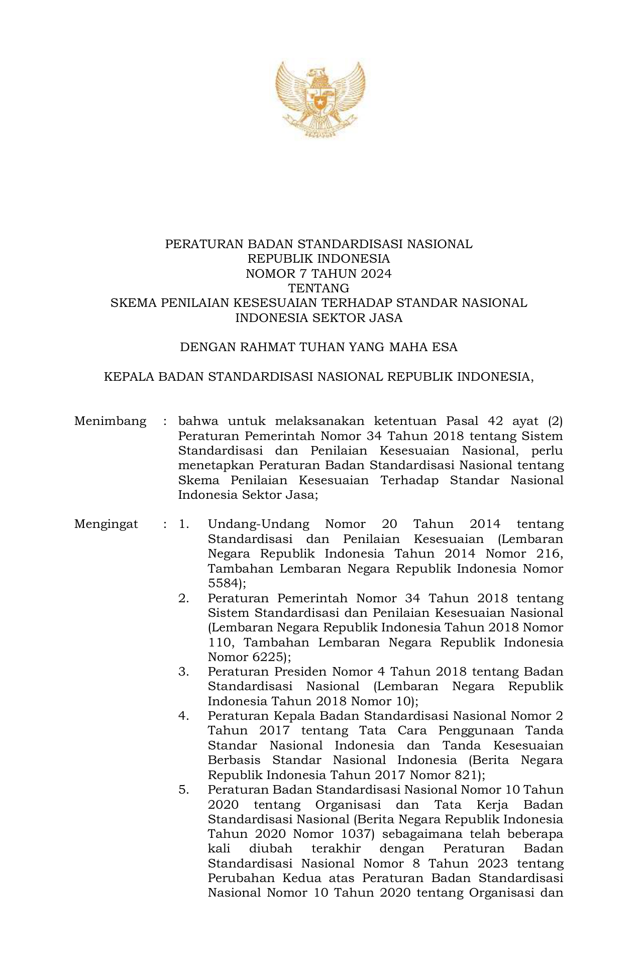 PERBAN Nomor 7 Tahun 2024 | Peraturan Badan Nomor 7 Tahun 2024 tentang Skema Penilaian Kesesuaian terhadap Standar Nasional Indonesia Sektor Jasa