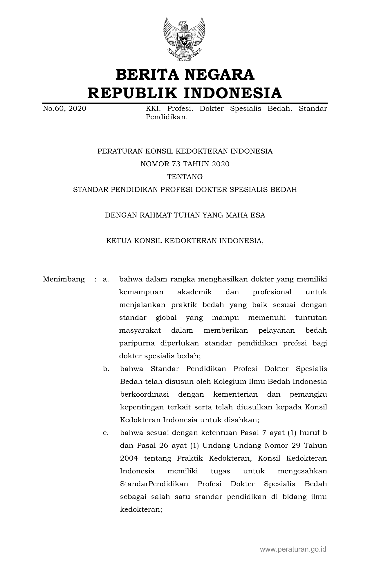 PERBAN Nomor 73 Tahun 2020 | Peraturan Badan Nomor 73 Tahun 2020 tentang STANDAR PENDIDIKAN PROFESI DOKTER SPESIALIS BEDAH