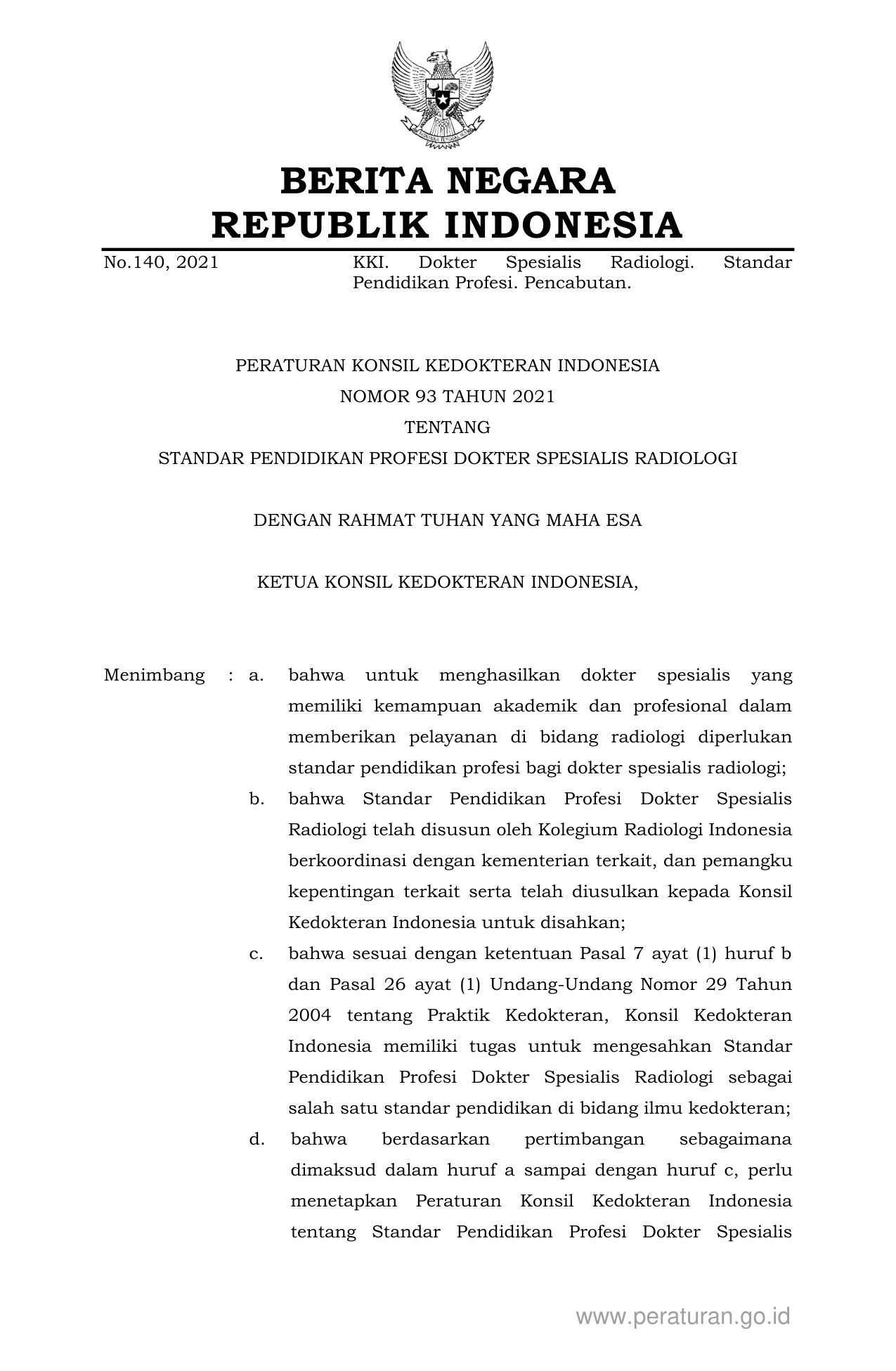 PERBAN Nomor 93 Tahun 2021 | Peraturan Badan Nomor 93 Tahun 2021 tentang STANDAR PENDIDIKAN PROFESI DOKTER SPESIALIS RADIOLOGI