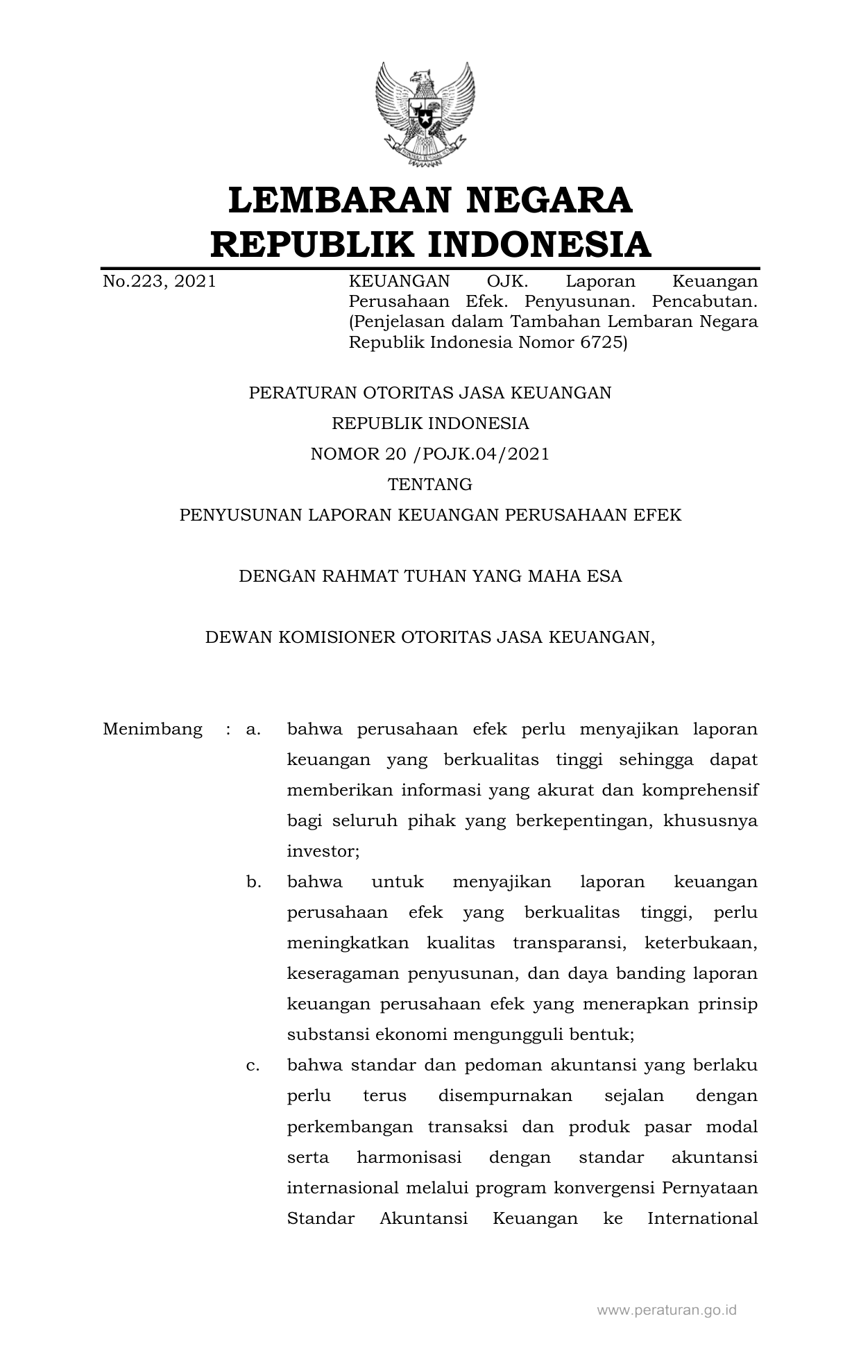 PERBAN Nomor 20-pojk-04-2021 Tahun 2021 | Peraturan Badan Nomor 20-pojk-04-2021 Tahun 2021 tentang PENYUSUNAN LAPORAN KEUANGAN PERUSAHAAN EFEK