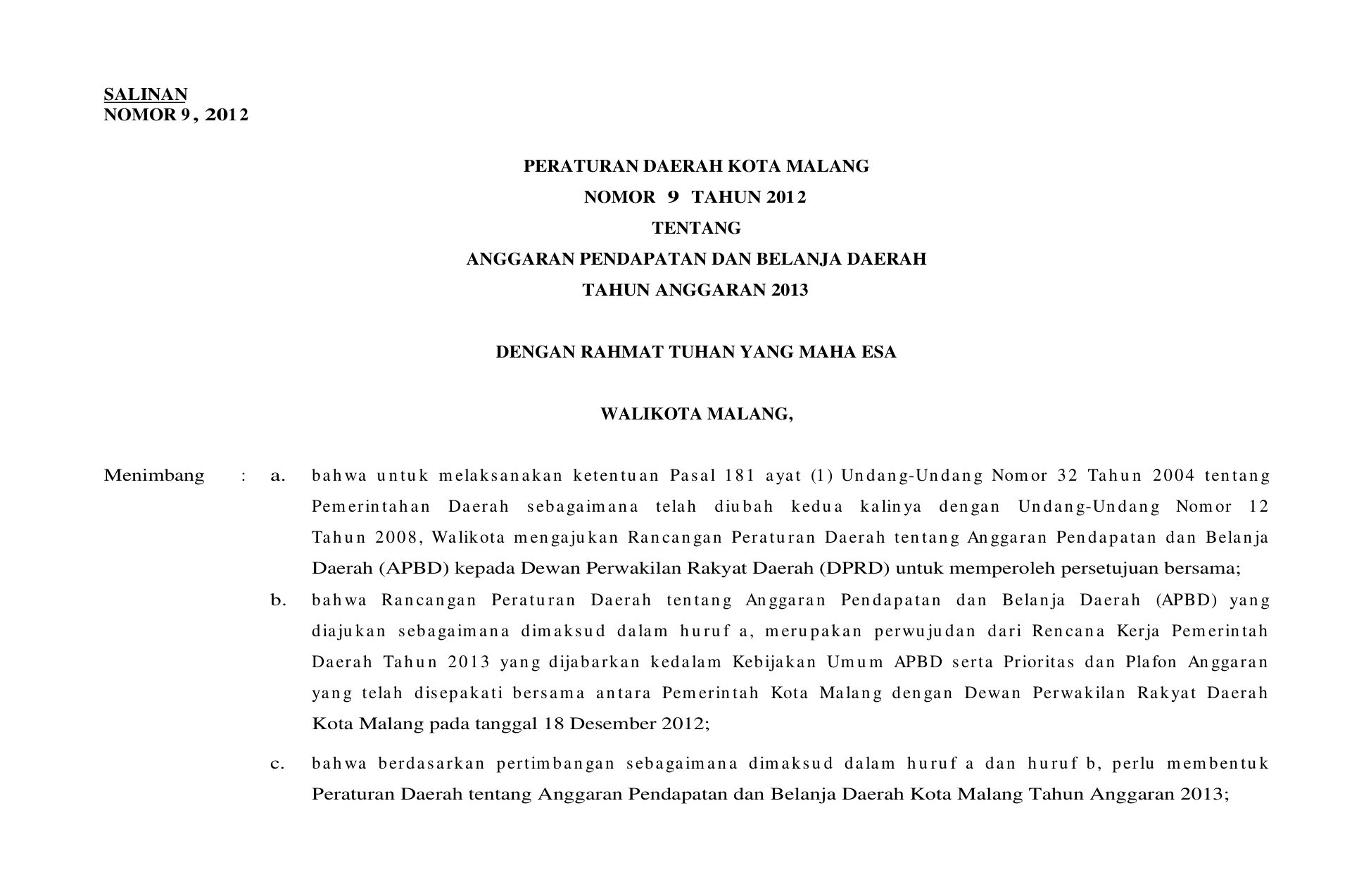 PERDA Nomor 9 Tahun 2022 | Peraturan Daerah Nomor 9 Tahun 2022 tentang ANGGARAN PENDAPATAN DAN BELANJA DAERAHTAHUN ANGGARAN 2013