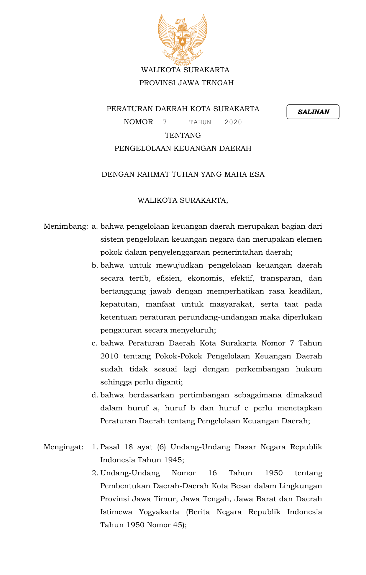 PERDA Nomor 7 Tahun 2020 | Peraturan Daerah Nomor 7 Tahun 2020 tentang PENGELOLAAN KEUANGAN DAERAH