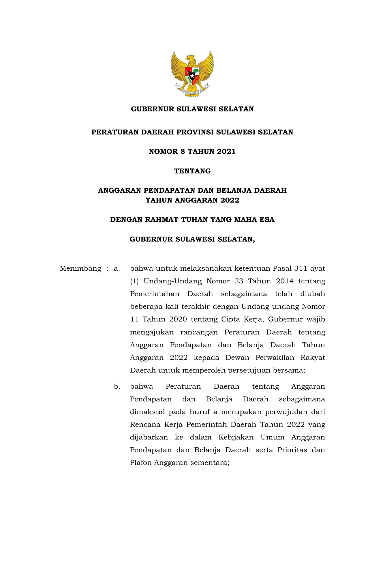 PERDA Nomor 8 Tahun 2022 | Peraturan Daerah Nomor 8 Tahun 2022 tentang Anggaran Pendapatan dan Belanja Daerah Tahun Anggaran 2022