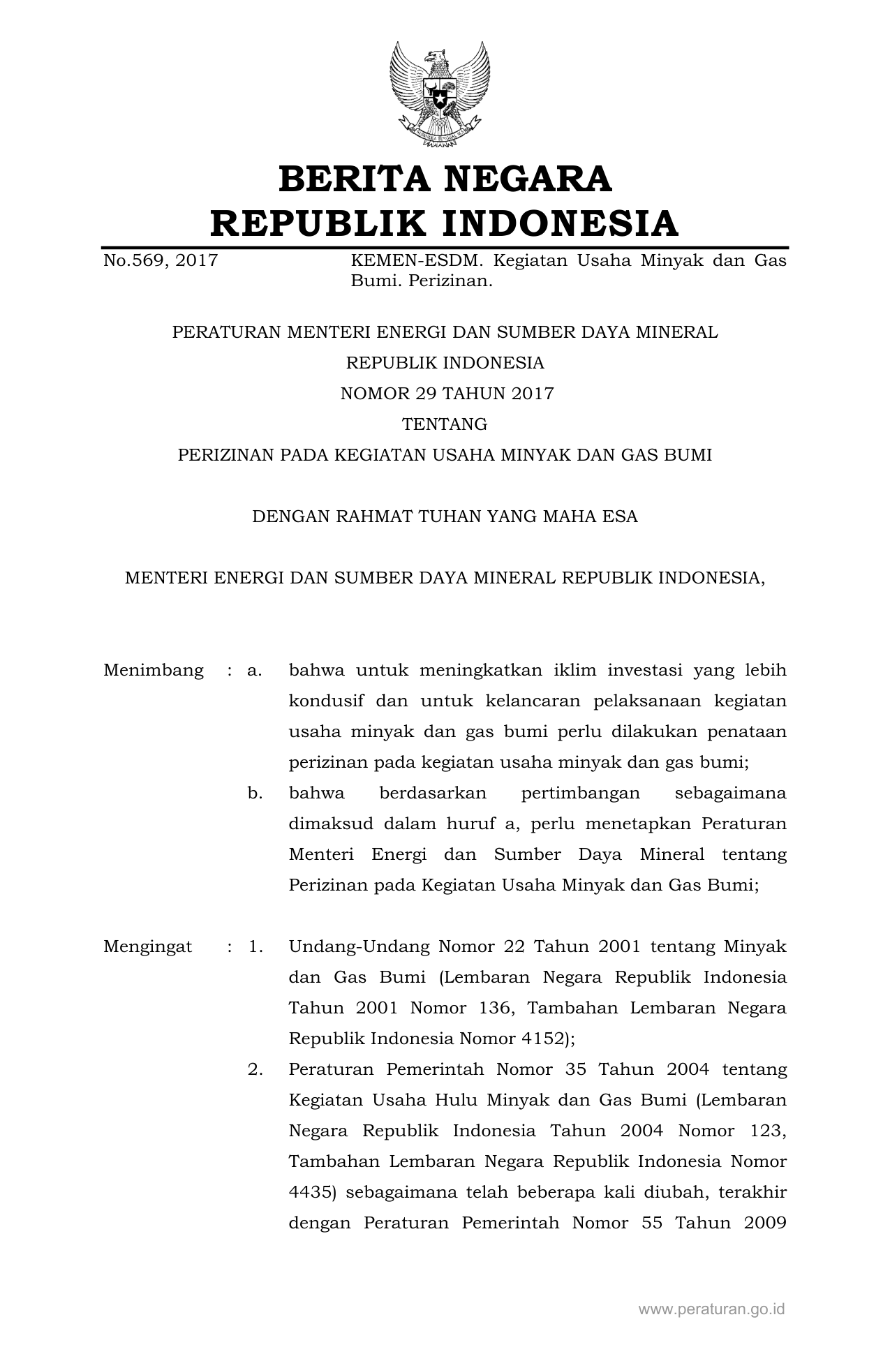 PERMEN Nomor 29 Tahun 2017 | Peraturan Menteri Nomor 29 Tahun 2017 tentang Perizinan Pada Kegiatan Usaha Minyak dan Gas Bumi
