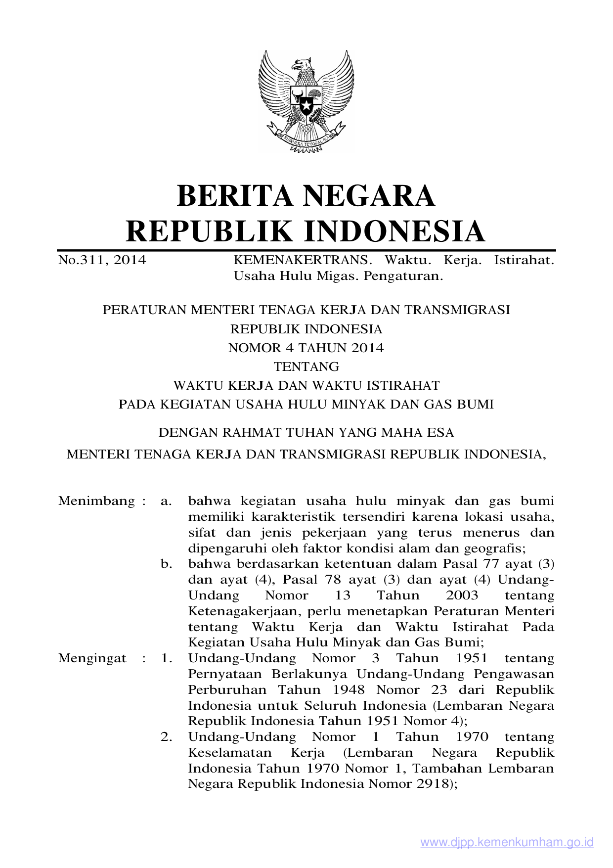 PERMEN Nomor 4 Tahun 2014 | Peraturan Menteri Nomor 4 Tahun 2014 tentang WAKTU KERJA DAN WAKTU ISTIRAHAT PADA KEGIATAN USAHA HULU MINYAK DAN GAS BUMI