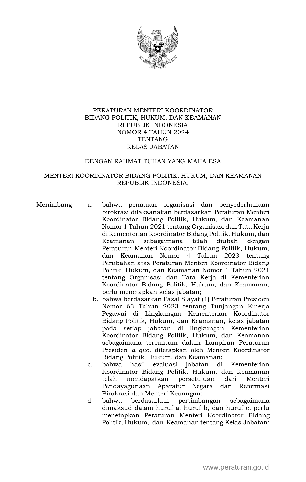 PERMEN Nomor 4 Tahun 2024 | Peraturan Menteri Nomor 4 Tahun 2024 tentang KELAS JABATAN