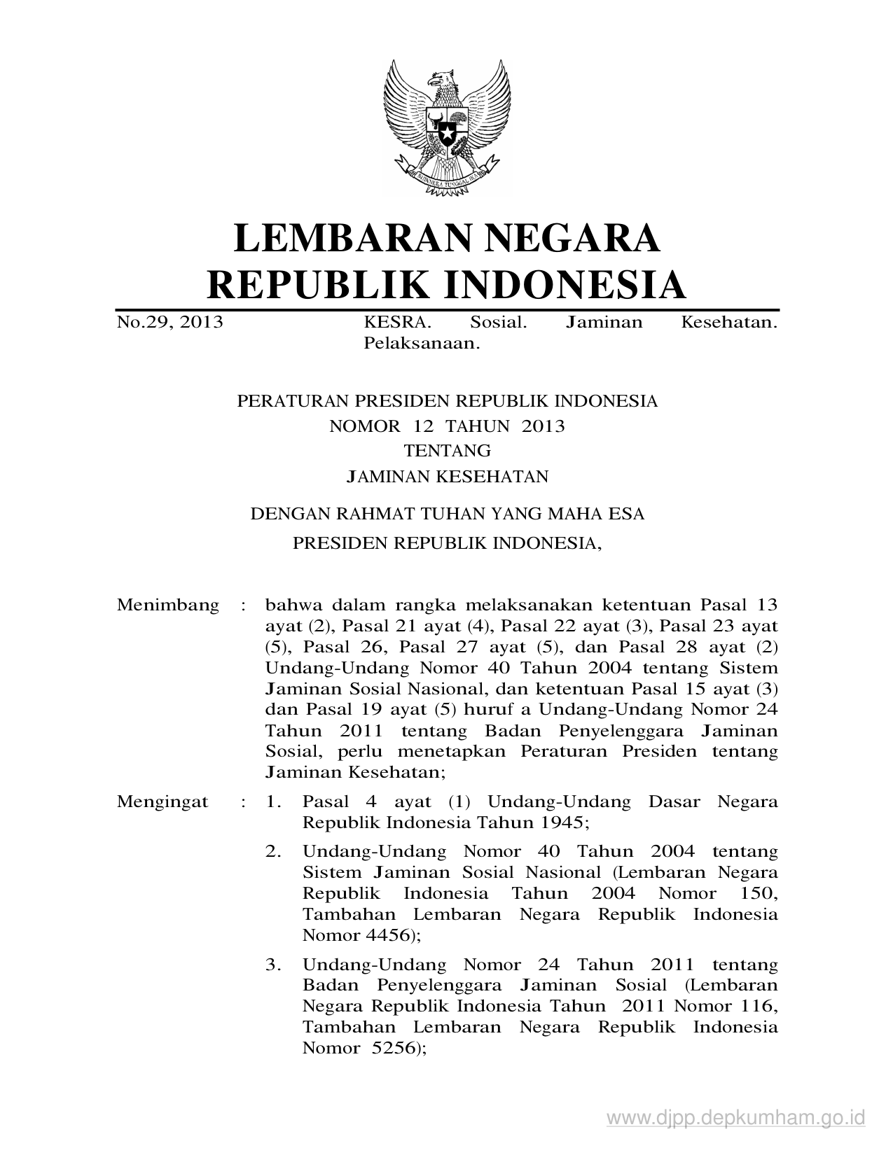 PERPRES Nomor 12 Tahun 2013 | Peraturan Presiden Nomor 12 Tahun 2013 tentang JAMINAN KESEHATAN