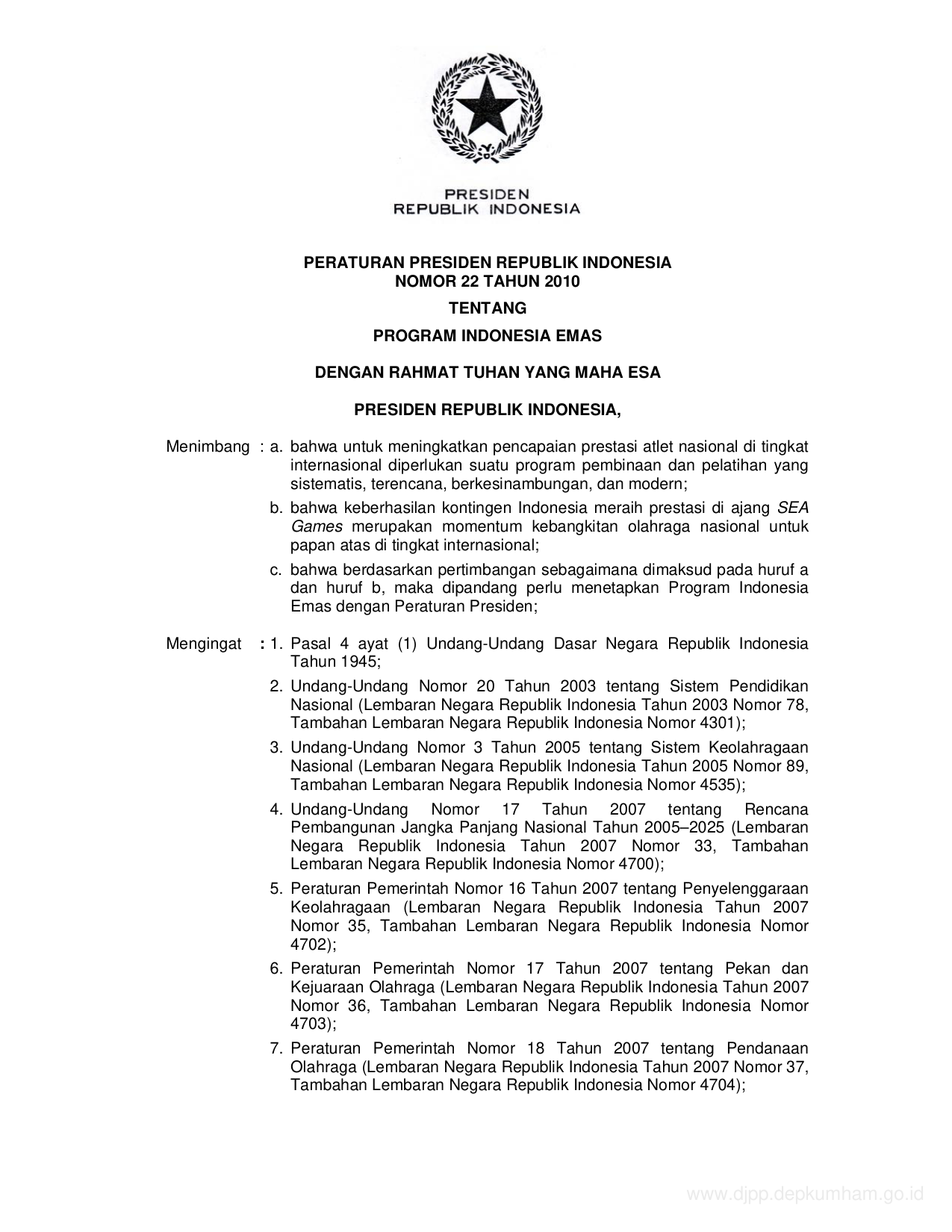 PERPRES Nomor 22 Tahun 2010 | Peraturan Presiden Nomor 22 Tahun 2010 tentang PROGRAM INDONESIA EMAS