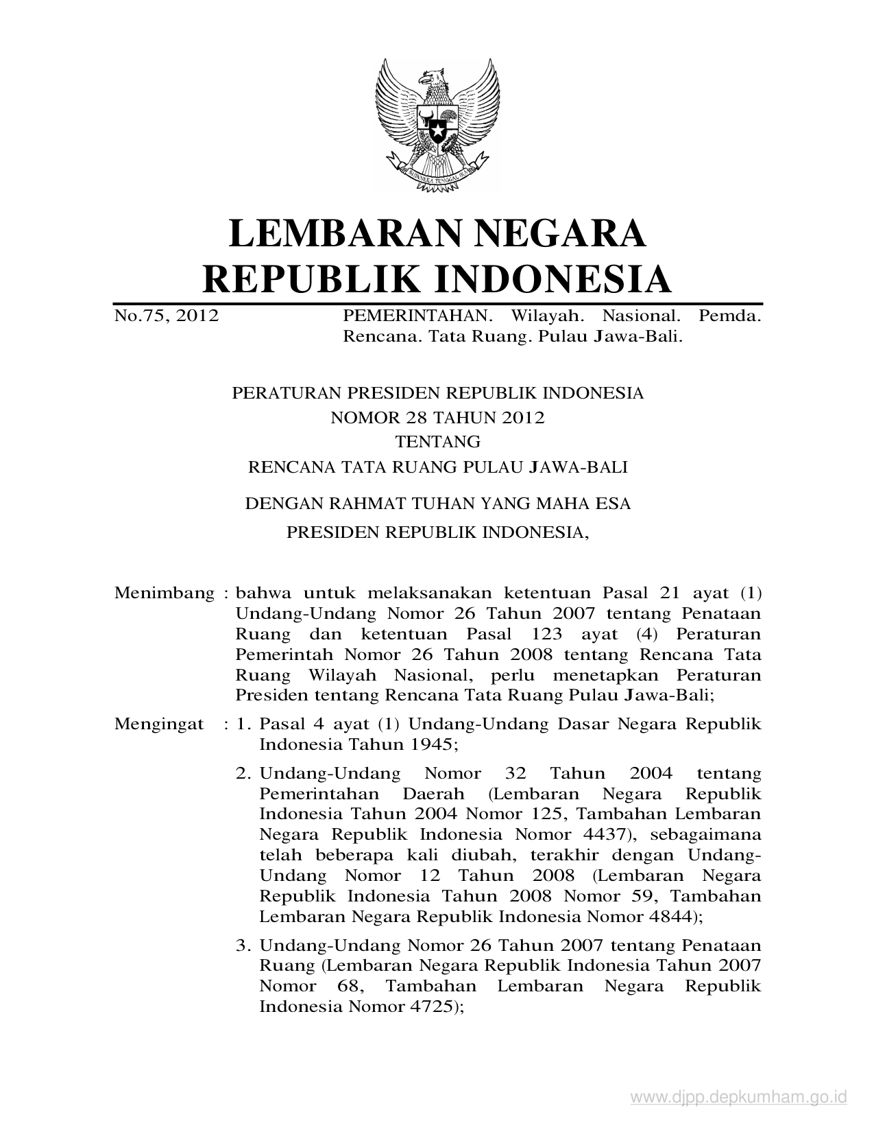 PERPRES Nomor 28 Tahun 2012 | Peraturan Presiden Nomor 28 Tahun 2012 tentang RENCANA TATA RUANG PULAU JAWA-BALI