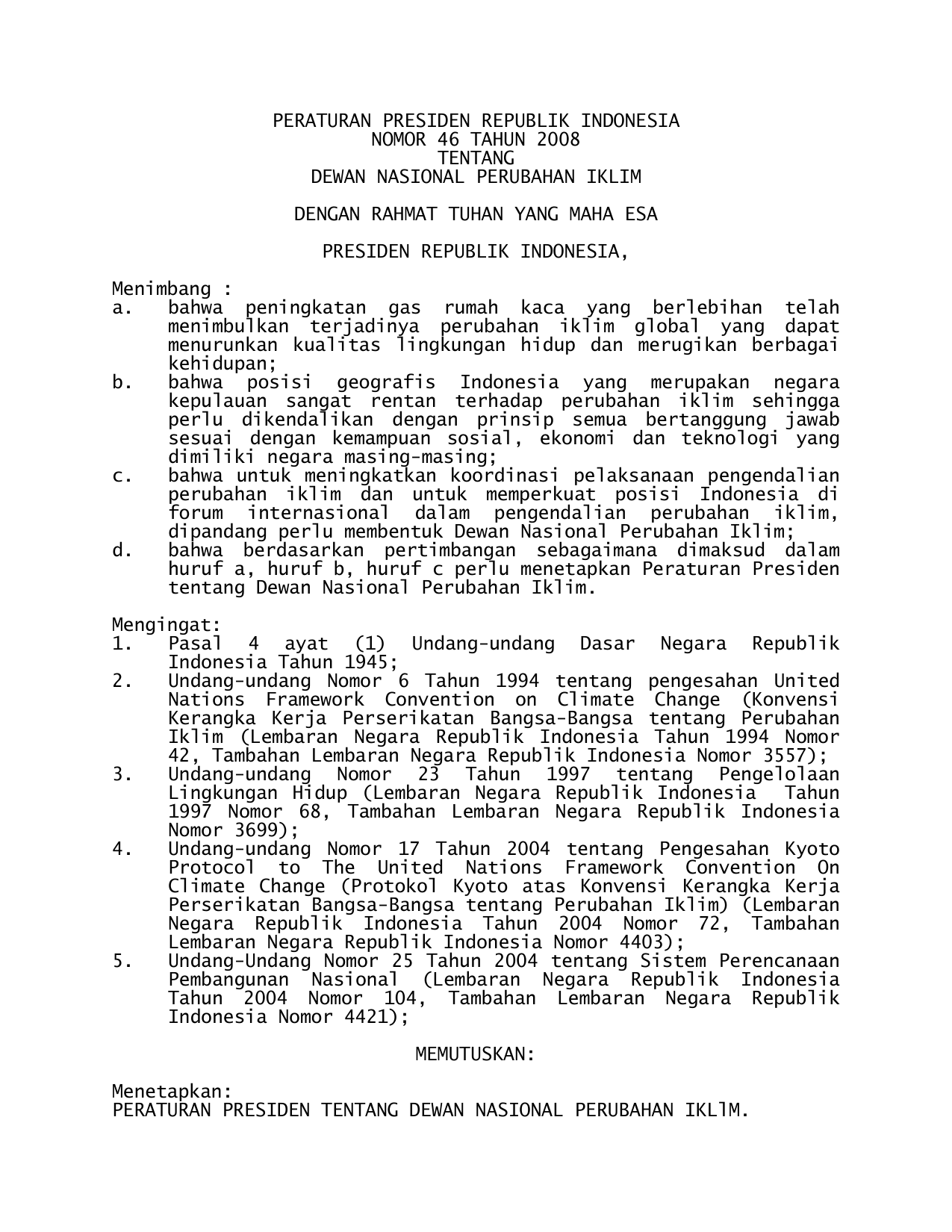PERPRES Nomor 46 Tahun 2008 | Peraturan Presiden Nomor 46 Tahun 2008 tentang DEWAN NASIONAL PERUBAHAN IKLIM