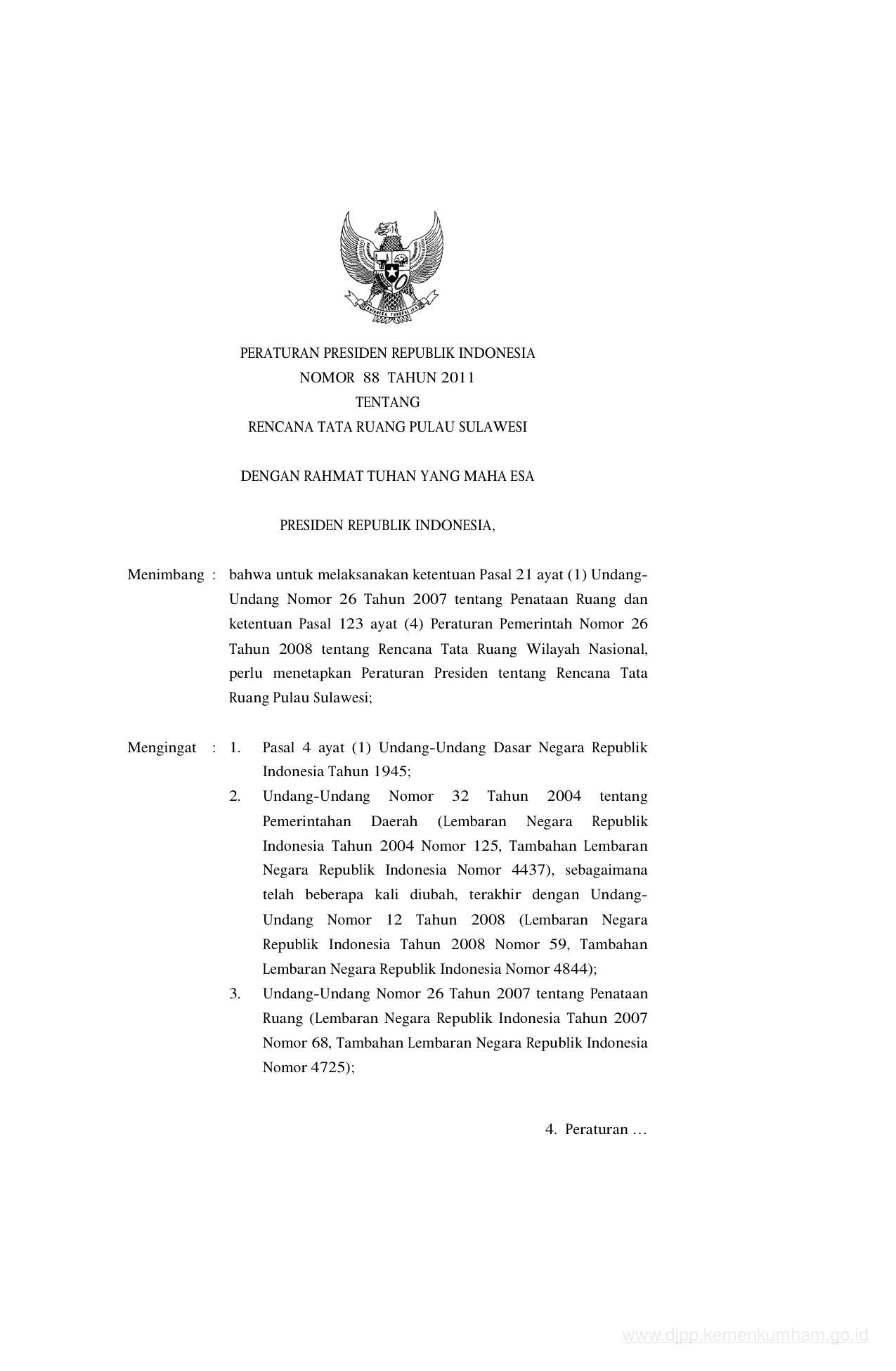 PERPRES Nomor 88 Tahun 2011 | Peraturan Presiden Nomor 88 Tahun 2011 tentang RENCANA TATA RUANG PULAU SULAWESI