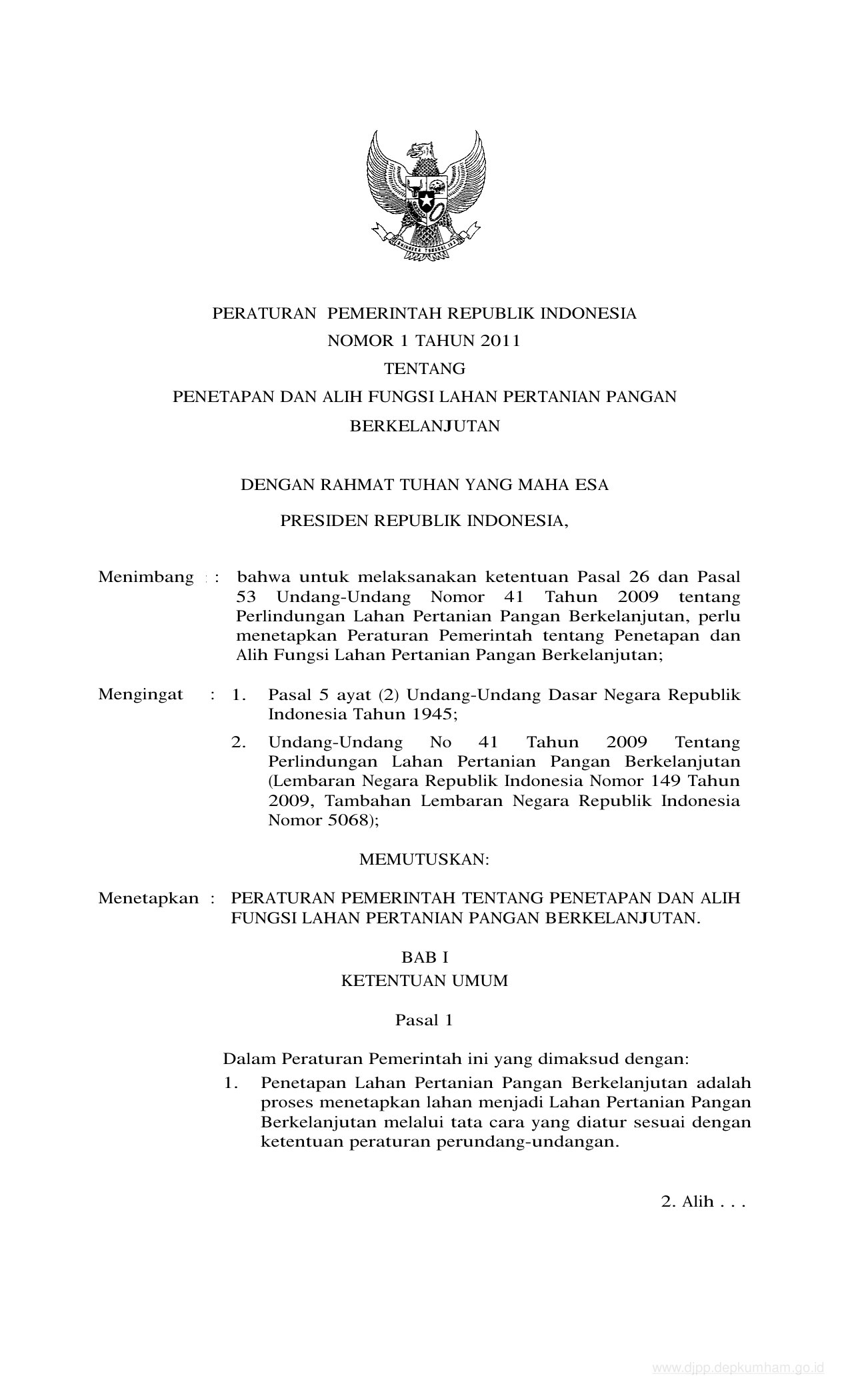 PP Nomor 1 Tahun 2011 | Peraturan Pemerintah Nomor 1 Tahun 2011 tentang PENETAPAN DAN ALIH FUNGSI LAHAN PERTANIAN PANGAN BERKELANJUTAN