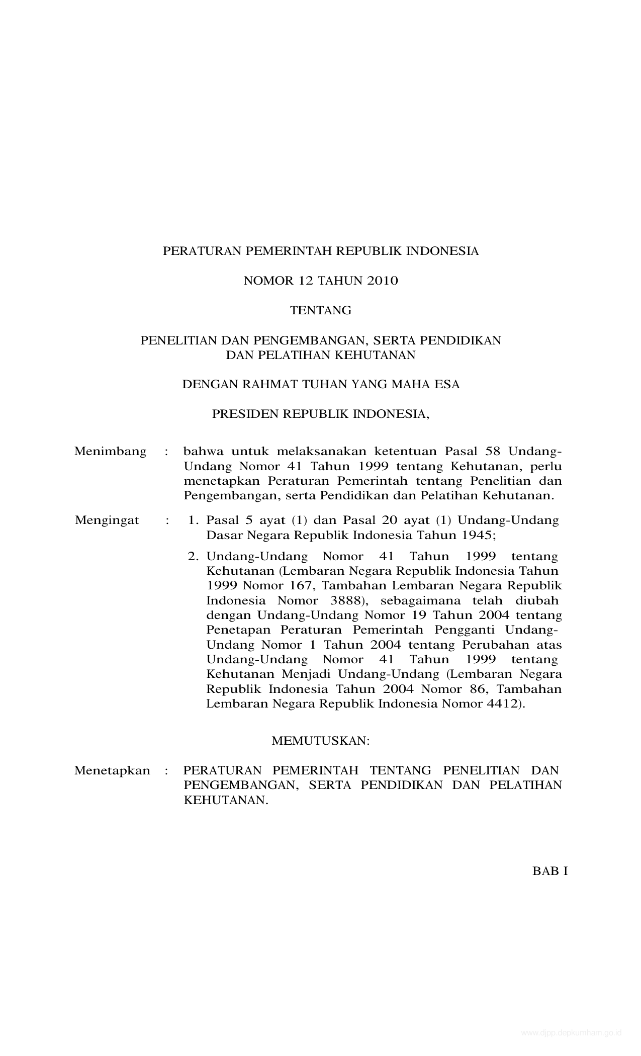 PP Nomor 12 Tahun 2010 | Peraturan Pemerintah Nomor 12 Tahun 2010 tentang PENELITIAN DAN PENGEMBANGAN, SERTA PENDIDIKAN DAN PELATIHAN KEHUTANAN