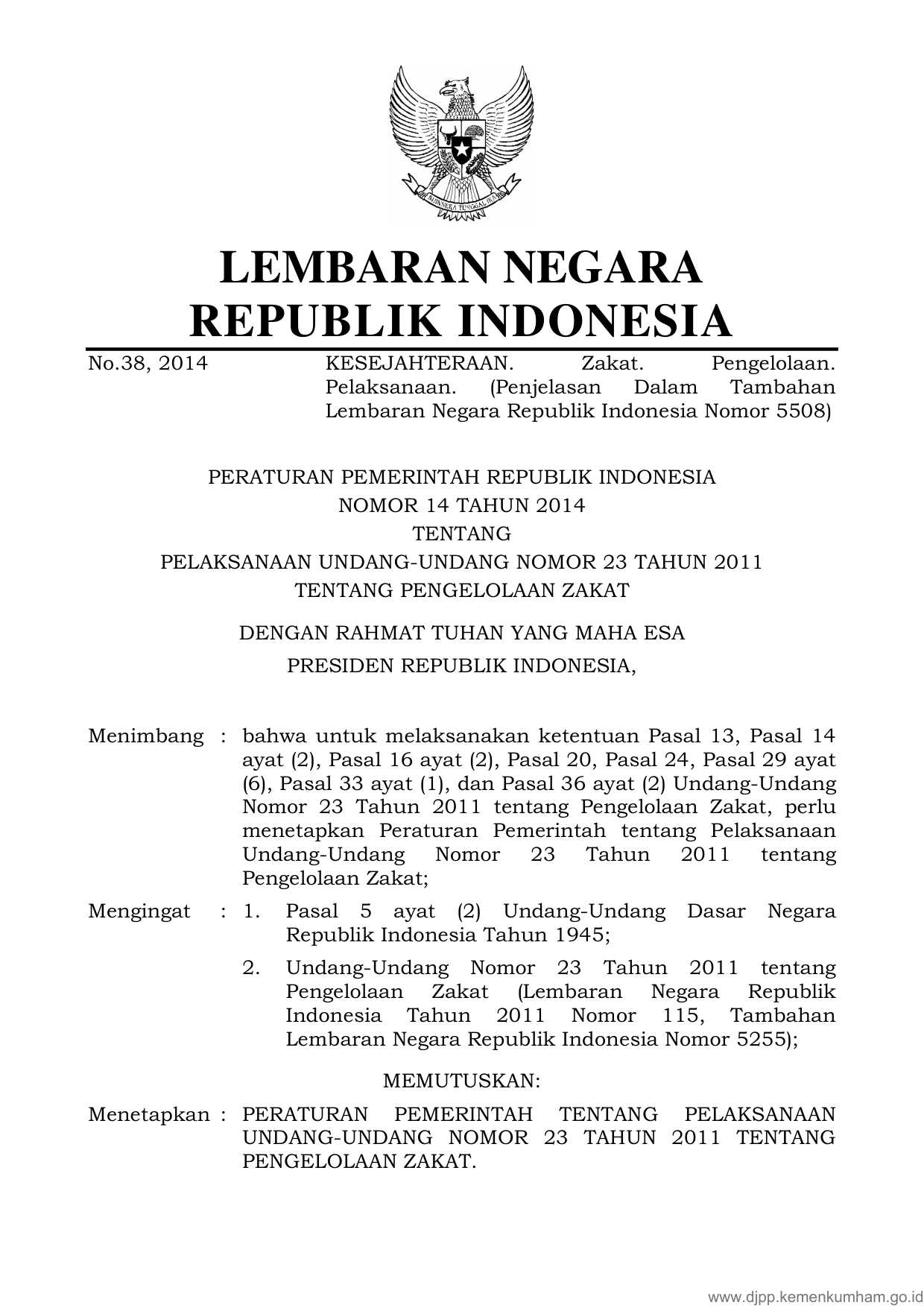 PP Nomor 14 Tahun 2014 | Peraturan Pemerintah Nomor 14 Tahun 2014 tentang PELAKSANAAN UNDANG-UNDANG NOMOR 23 TAHUN 2011 TENTANG PENGELOLAAN ZAKAT