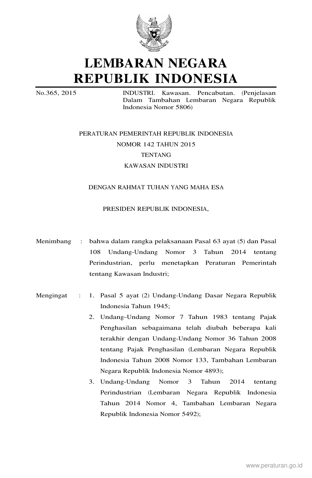 PP Nomor 142 Tahun 2015 | Peraturan Pemerintah Nomor 142 Tahun 2015 tentang KAWASAN INDUSTRI