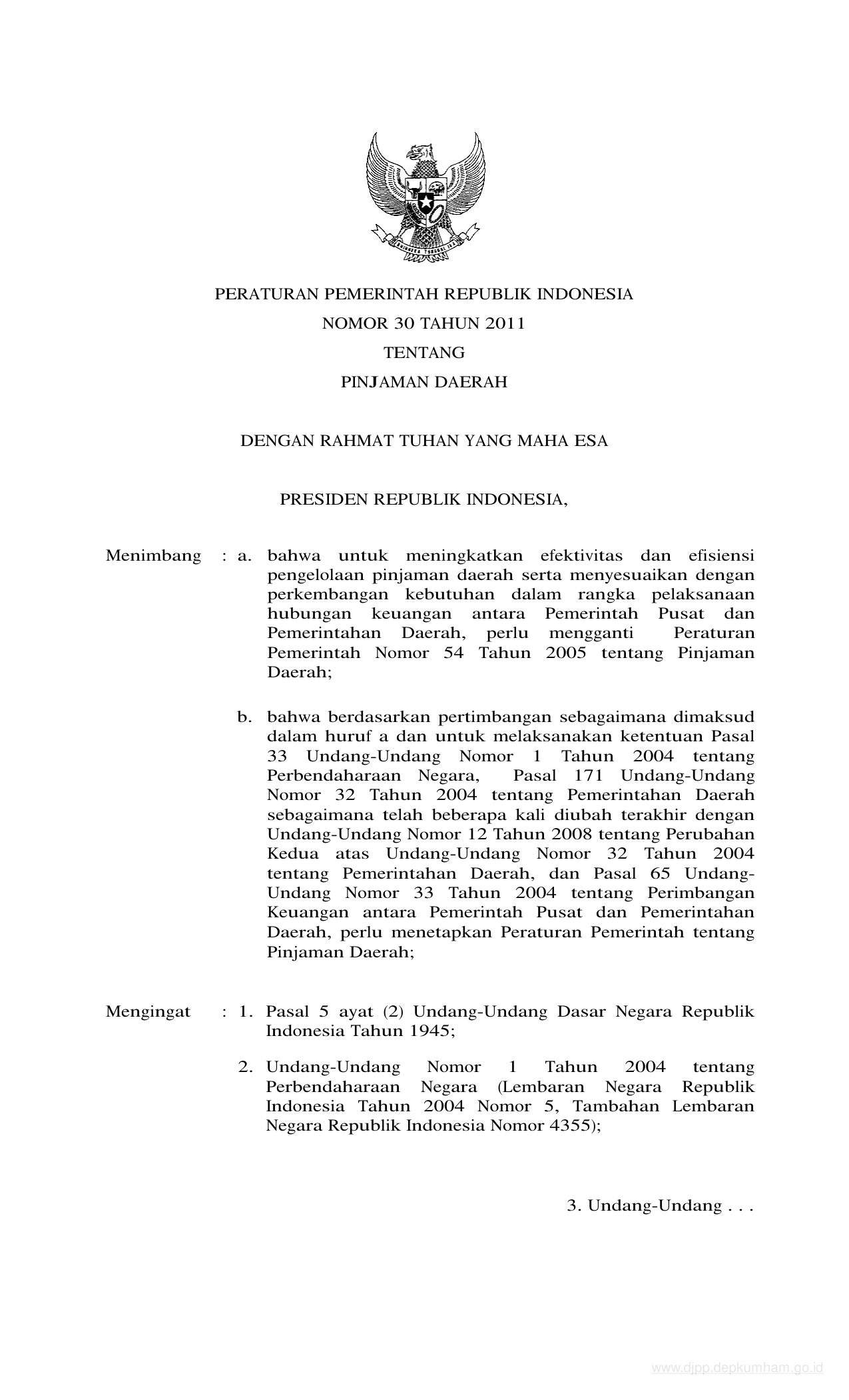 PP Nomor 30 Tahun 2011 | Peraturan Pemerintah Nomor 30 Tahun 2011 tentang PINJAMAN DAERAH