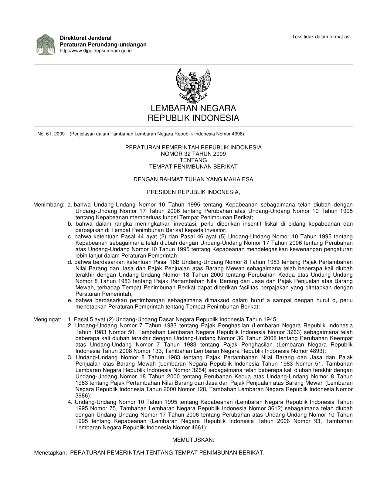 PP Nomor 32 Tahun 2009 | Peraturan Pemerintah Nomor 32 Tahun 2009 tentang TEMPAT PENIMBUNAN BERIKAT
