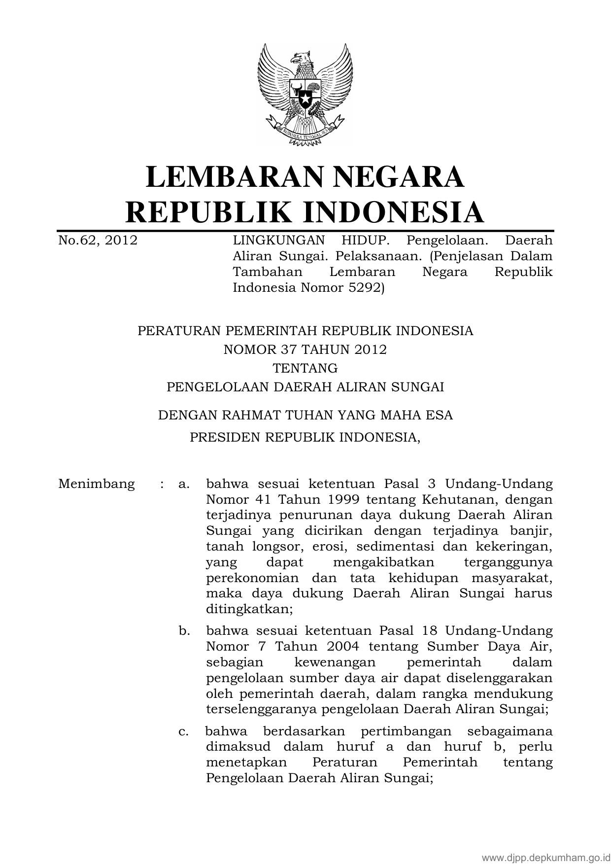 PP Nomor 37 Tahun 2012 | Peraturan Pemerintah Nomor 37 Tahun 2012 tentang PENGELOLAAN DAERAH ALIRAN SUNGAI