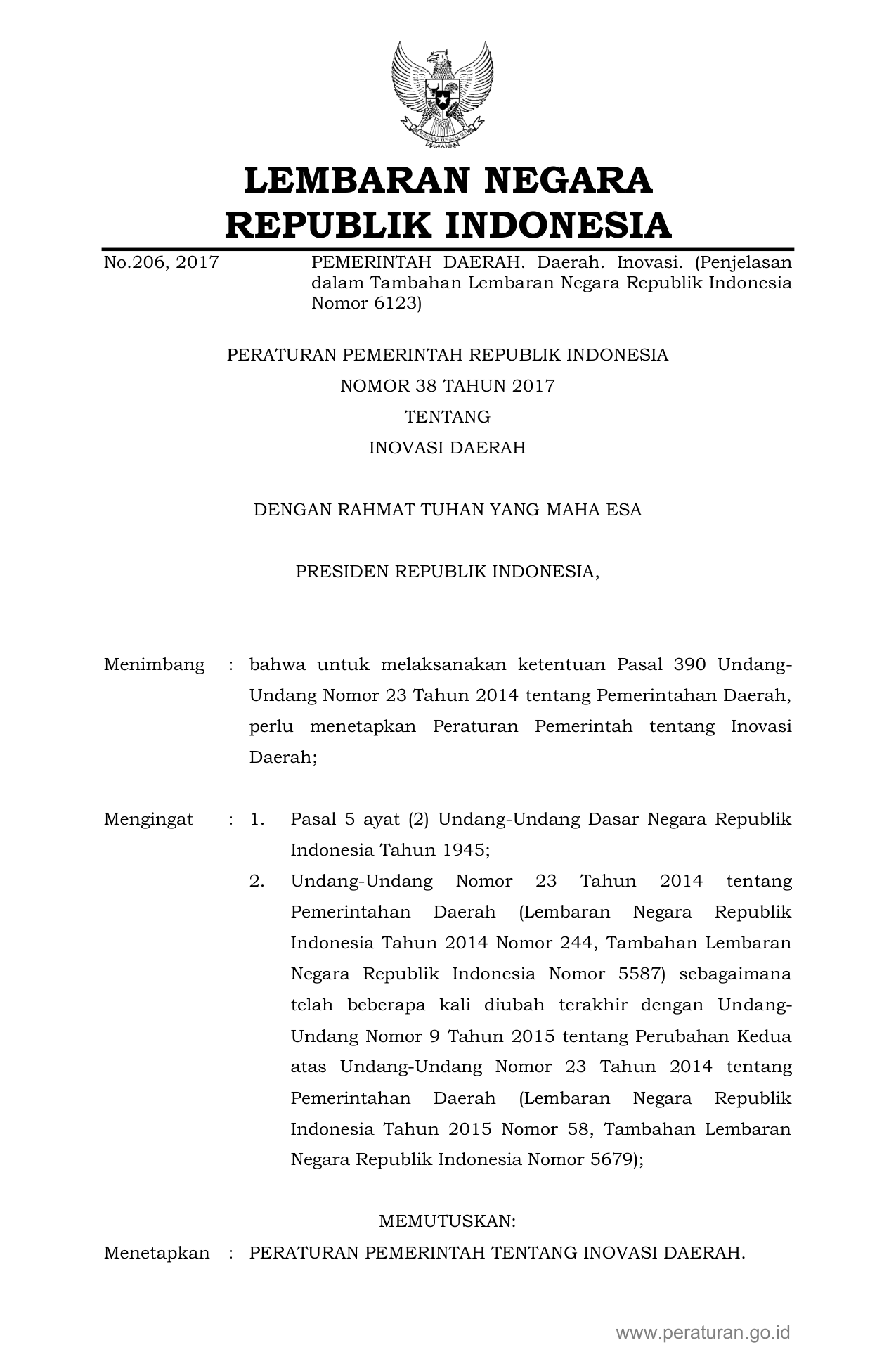 PP Nomor 38 Tahun 2017 | Peraturan Pemerintah Nomor 38 Tahun 2017 tentang Inovasi Daerah