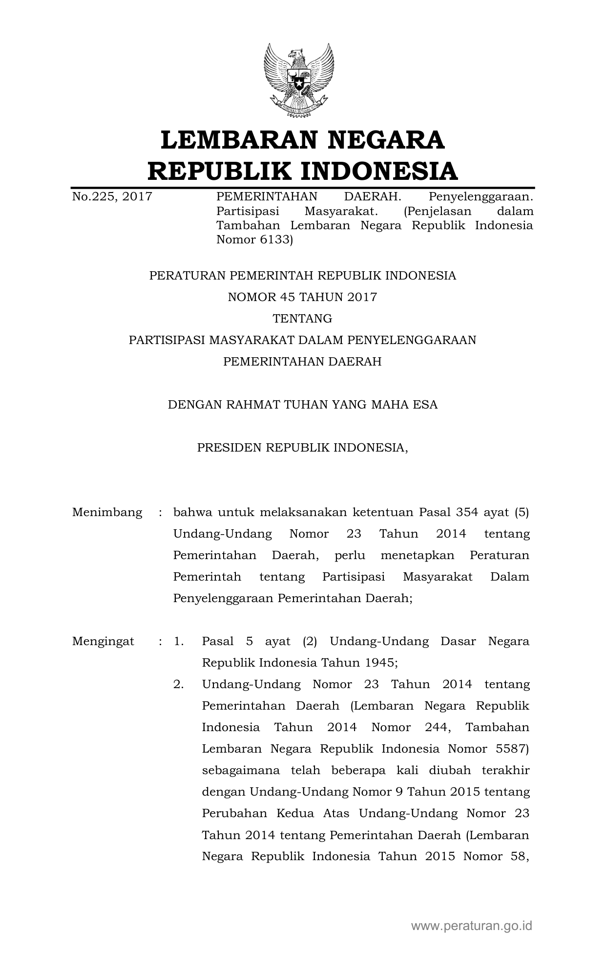 PP Nomor 45 Tahun 2017 | Peraturan Pemerintah Nomor 45 Tahun 2017 tentang Partisipasi Masyarakat Dalam Penyelenggaraan Pemerintahan Daerah