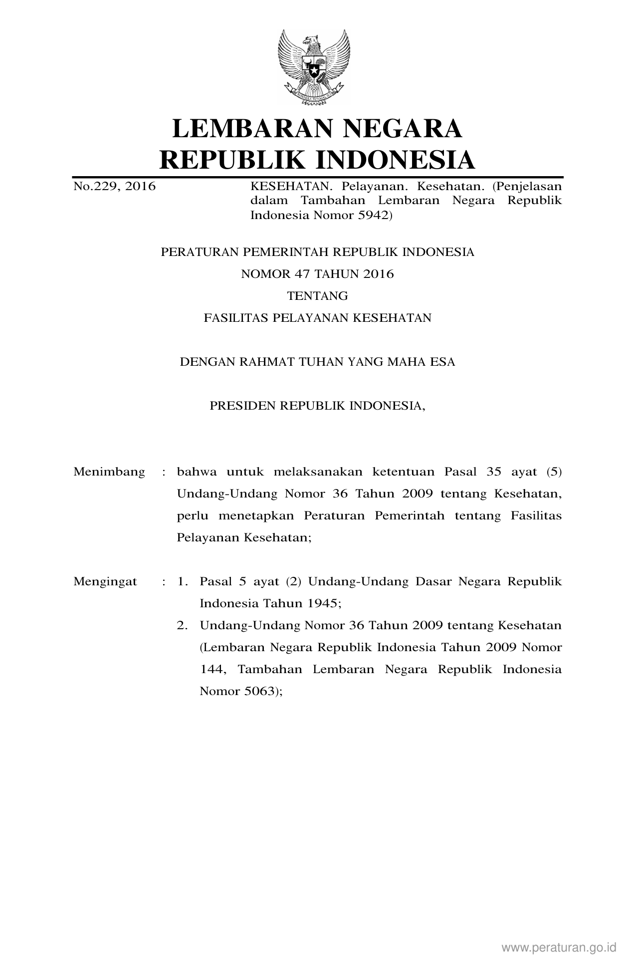 PP Nomor 47 Tahun 2016 | Peraturan Pemerintah Nomor 47 Tahun 2016 tentang Fasilitas Pelayanan Kesehatan