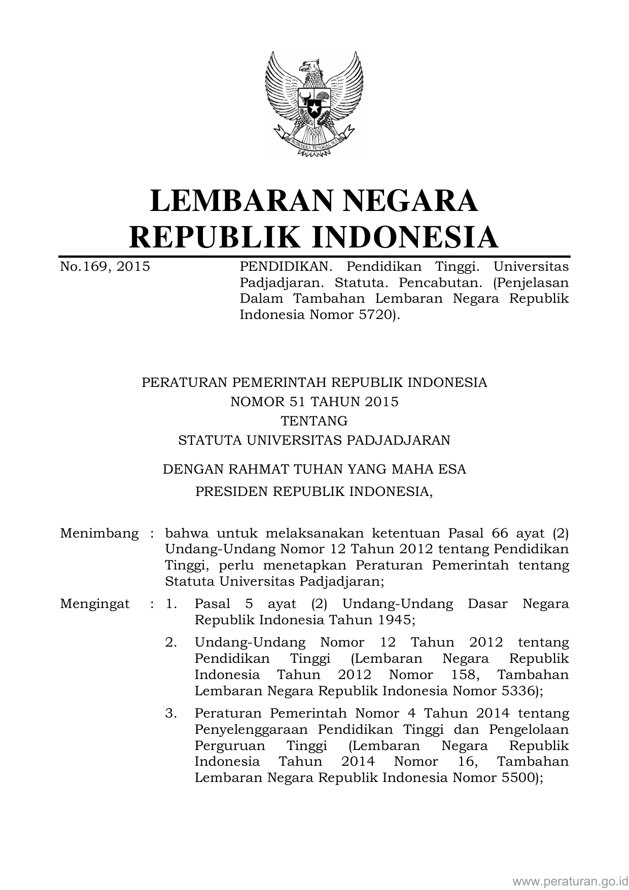 PP Nomor 51 Tahun 2015 | Peraturan Pemerintah Nomor 51 Tahun 2015 tentang STATUTA UNIVERSITAS PADJADJARAN