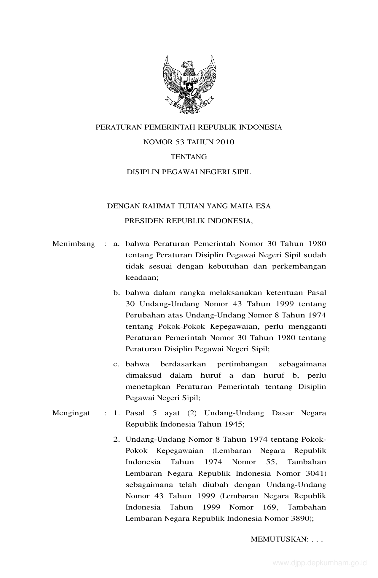 PP Nomor 53 Tahun 2010 | Peraturan Pemerintah Nomor 53 Tahun 2010 tentang DISIPLIN PEGAWAI NEGERI