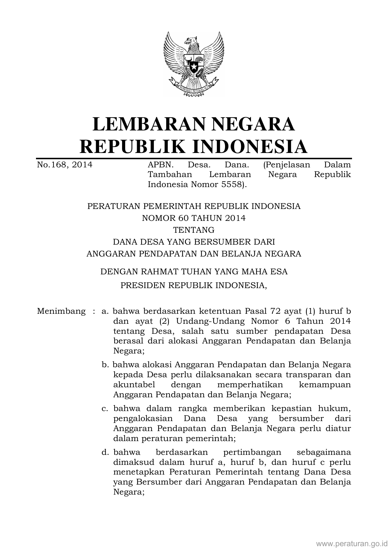 PP Nomor 60 Tahun 2014 | Peraturan Pemerintah Nomor 60 Tahun 2014 tentang DANA DESA YANG BERSUMBER DARI ANGGARAN PENDAPATAN DAN BELANJA NEGARA