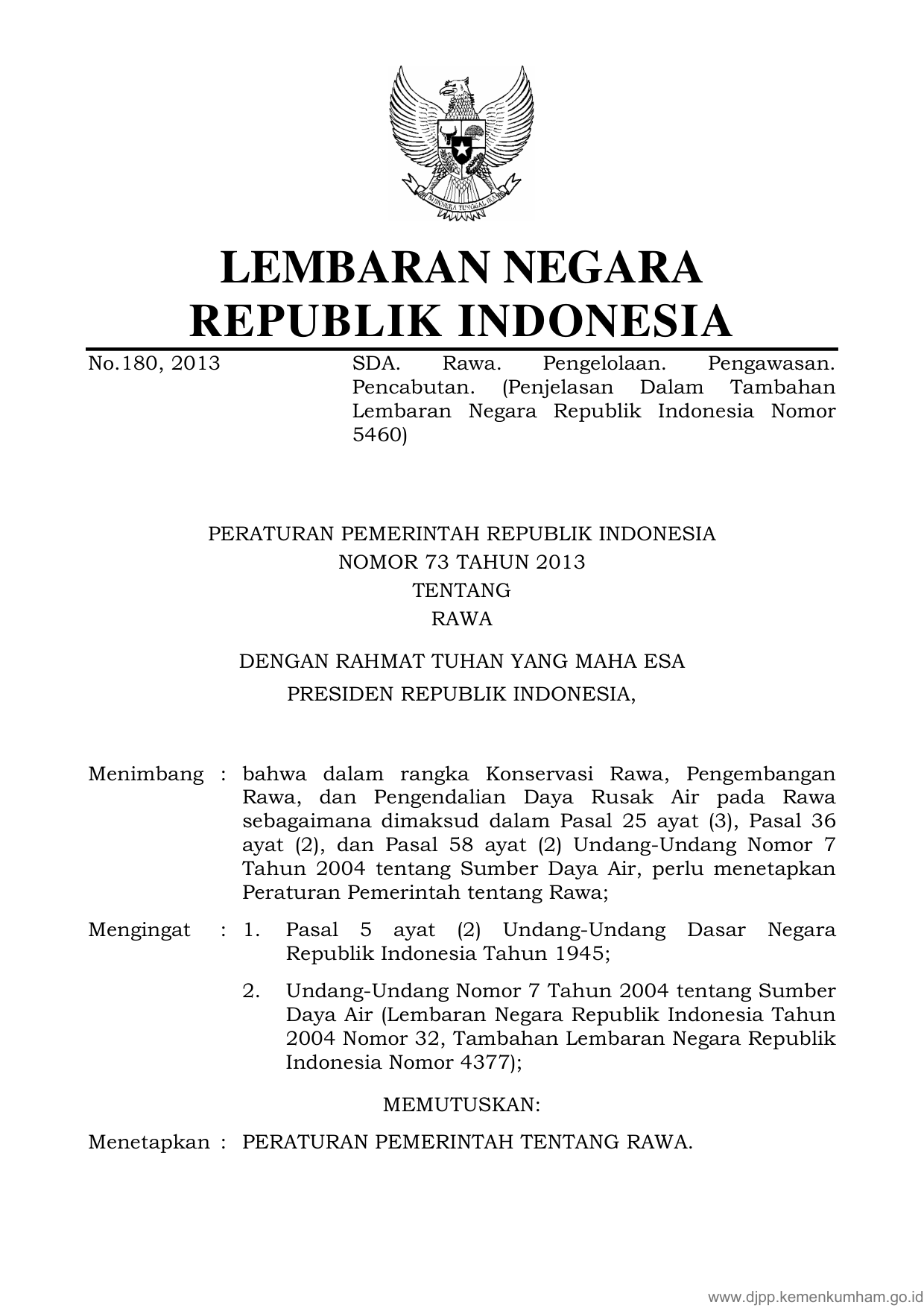 PP Nomor 73 Tahun 2013 | Peraturan Pemerintah Nomor 73 Tahun 2013 tentang RAWA