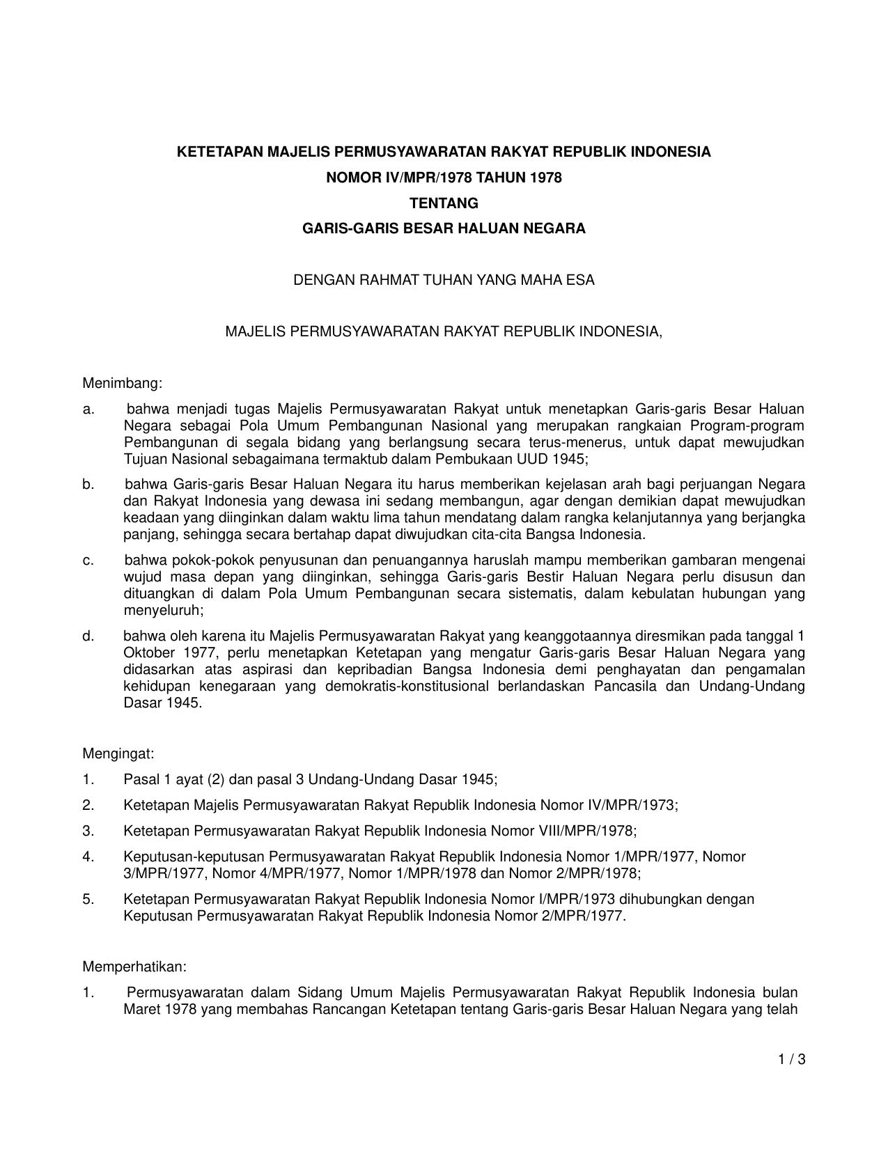 TAP_MPR Nomor iv-mpr-1978 Tahun 1978 | Ketetapan Majelis Permusyawaratan Rakyat Nomor iv-mpr-1978 Tahun 1978 tentang GARIS GARIS BESAR HALUAN NEGARA