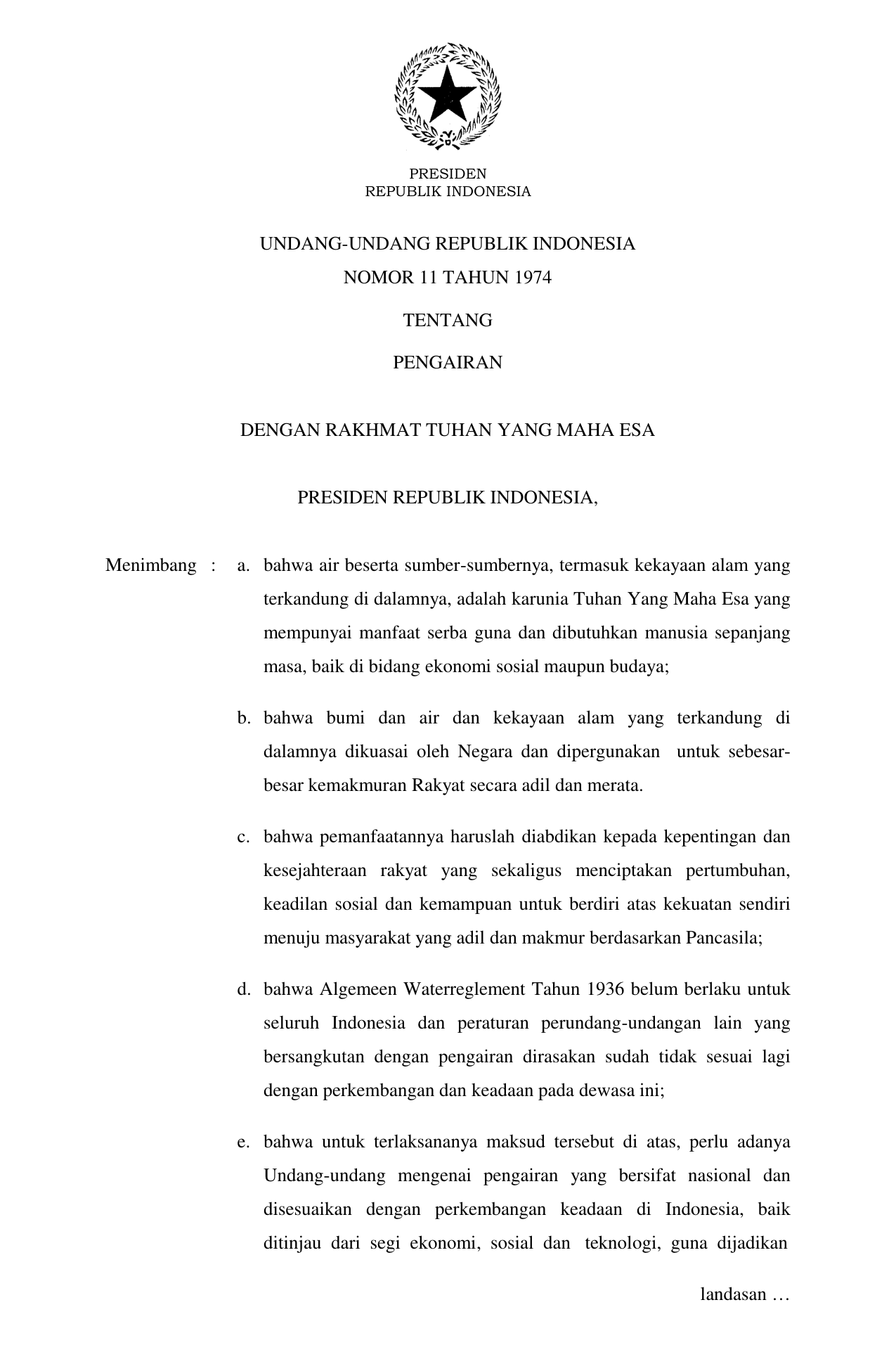 UU Nomor 11 Tahun 1974 | Undang-Undang Nomor 11 Tahun 1974 tentang PENGAIRAN
