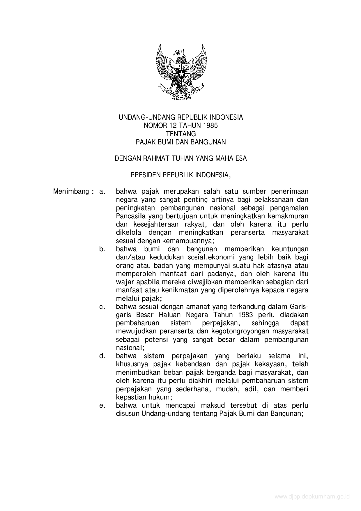 UU Nomor 12 Tahun 1985 | Undang-Undang Nomor 12 Tahun 1985 tentang PAJAK BUMI DAN BANGUNAN