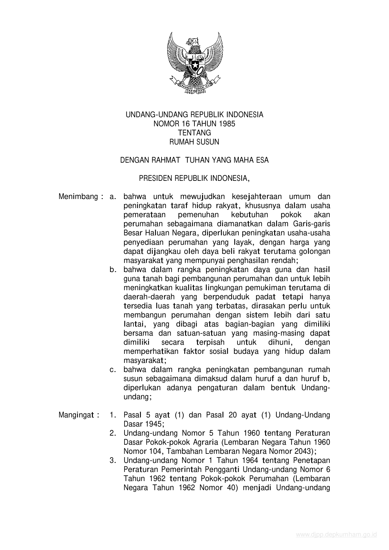 UU Nomor 16 Tahun 1985 | Undang-Undang Nomor 16 Tahun 1985 tentang RUMAH SUSUN