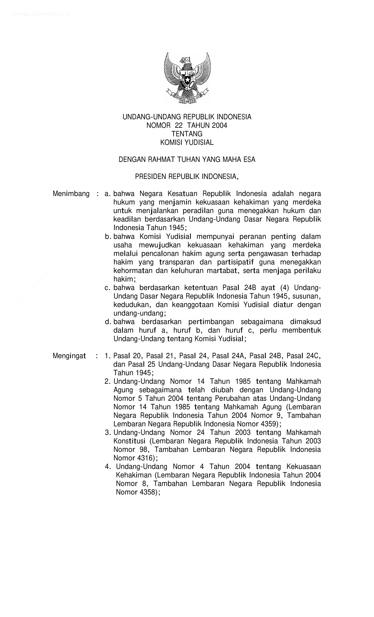 UU Nomor 22 Tahun 2004 | Undang-Undang Nomor 22 Tahun 2004 tentang KOMISI YUDISIAL
