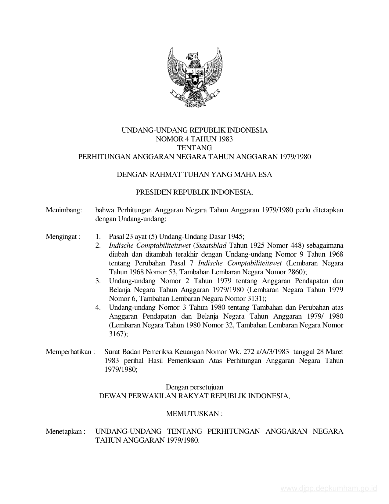 (3) Sisa lebih Perhitungan Anggaran Negara Tahun Anggaran 1979/1980 adalah sebesar Rp