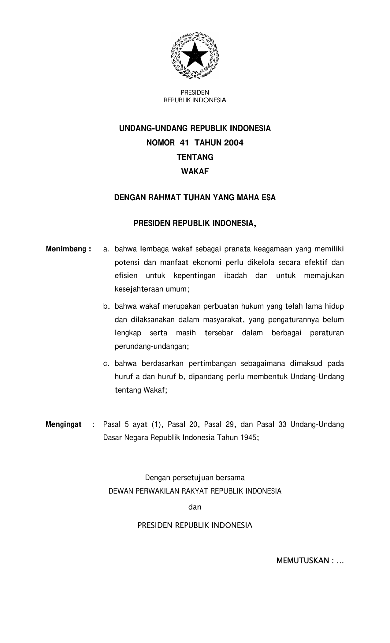 UU Nomor 41 Tahun 2004 | Undang-Undang Nomor 41 Tahun 2004 tentang WAKAF