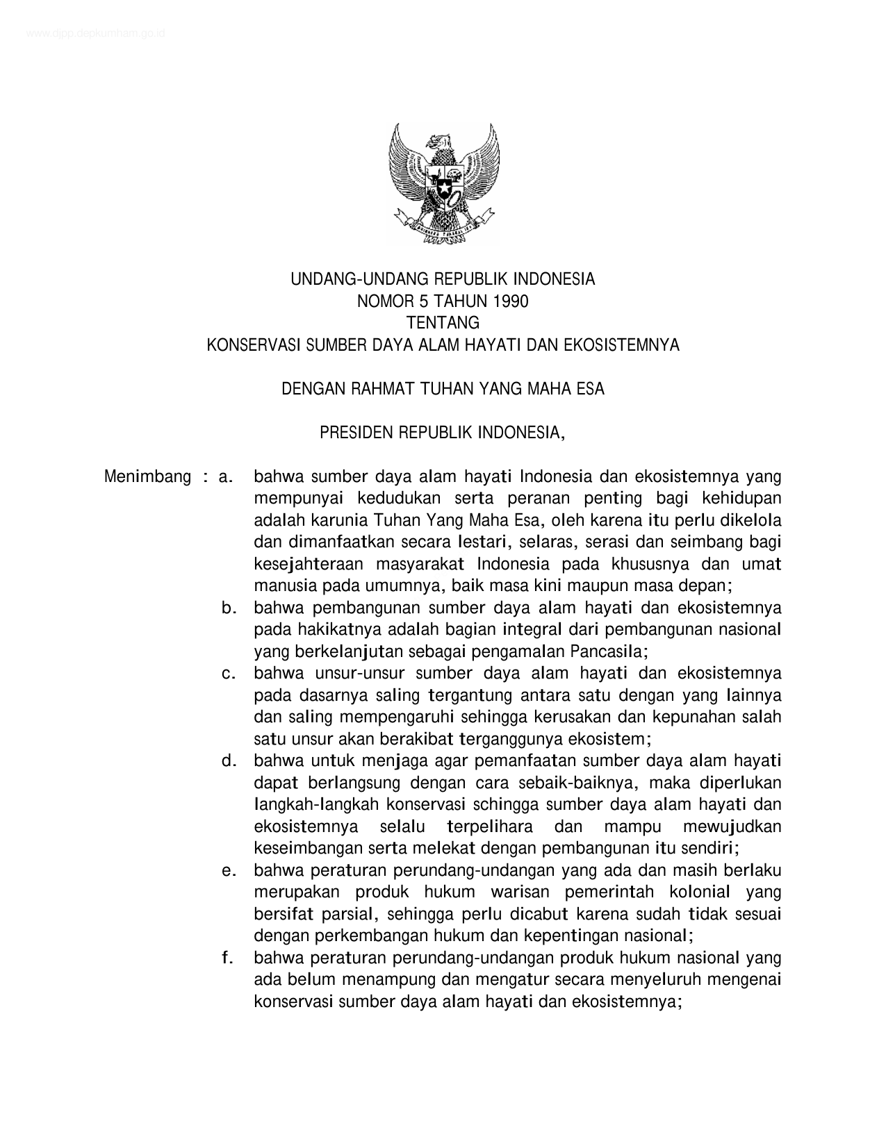 UU Nomor 5 Tahun 1990 | Undang-Undang Nomor 5 Tahun 1990 tentang KONSERVASI SUMBER DAYA ALAM HAYATI DAN EKOSISTEMNYA